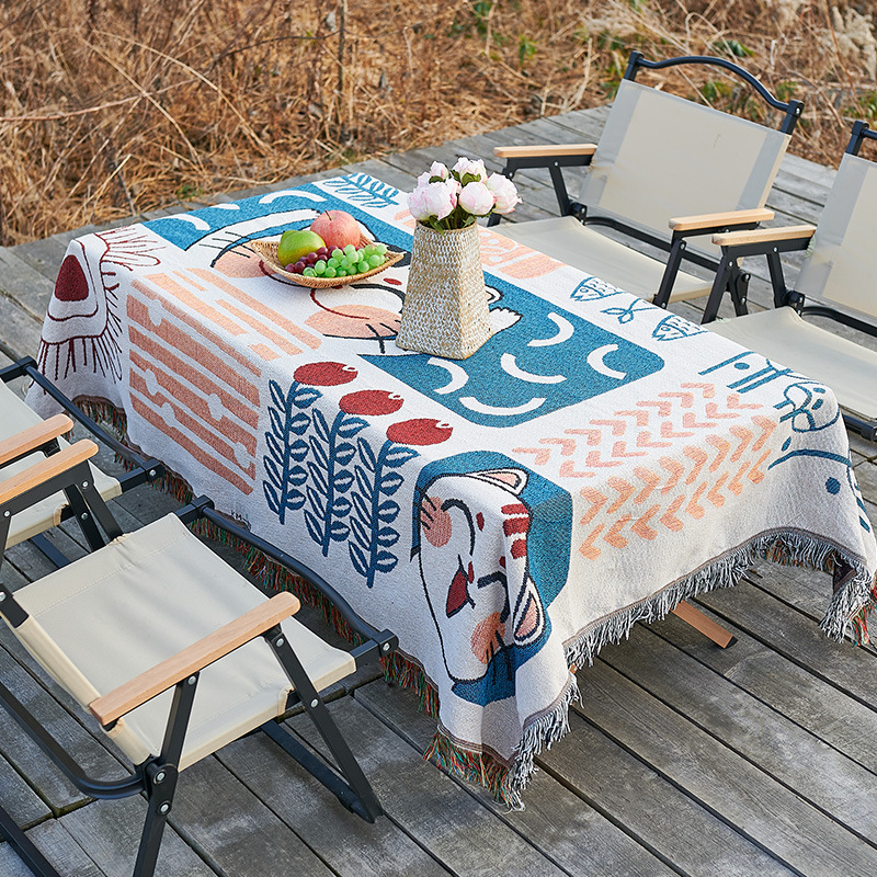 야외 캠핑 식탁보 인 스타일 다기능 직사각형 캠핑 식탁보 보헤미안 휴대용 피크닉 천