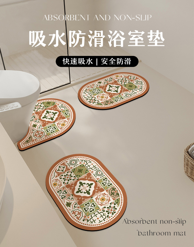 화장실 U 자형 매트 세면기 미끄럼 방지 매트 규조 진흙 흡수 매트 프랑스 중간 발 매트 화장실 카펫스토어 가기
