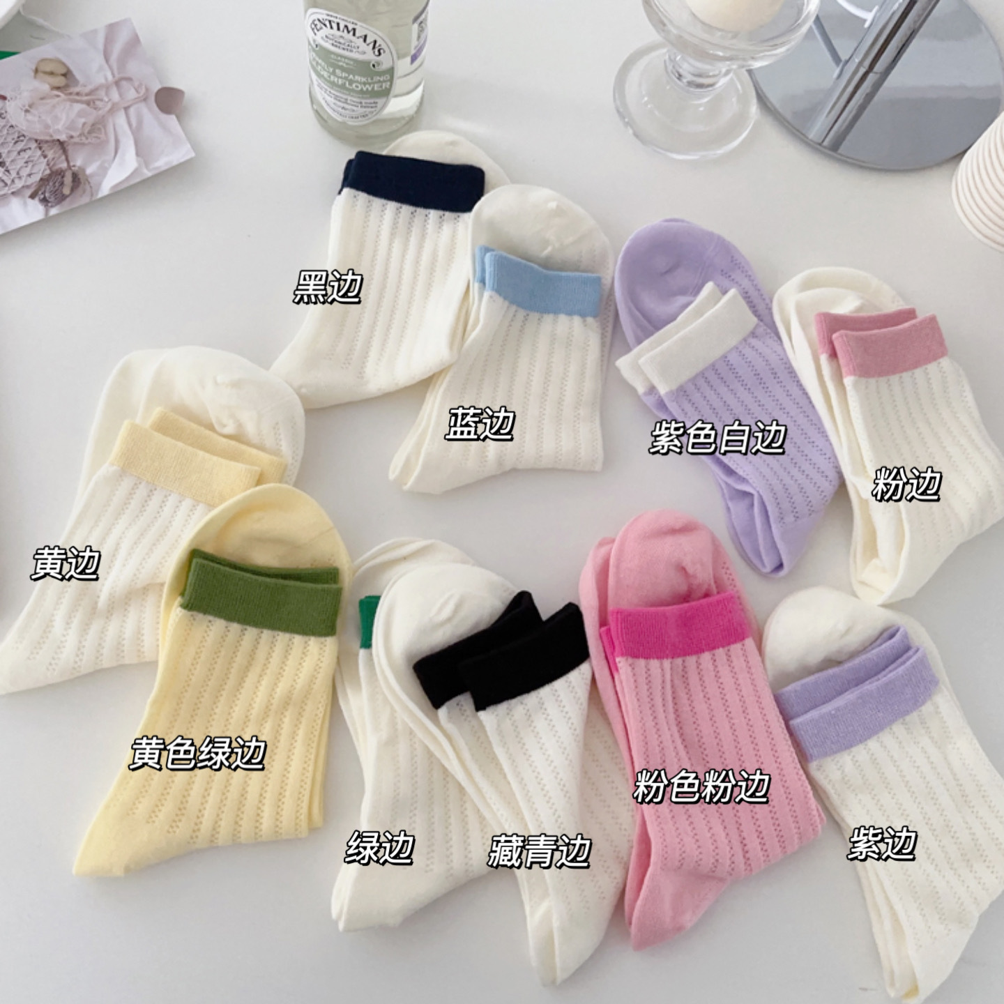 여름 크림 중공 색상 대비 양말 여성용 여름 얇은 통기성 캔디 컬러 Sakagiya의 중간 길이 양말스토어 가기