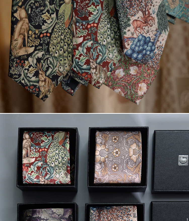 빈티지 패턴 남자의 비즈니스 캐주얼 넥타이 영국 스타일 작업 패션 유행 다크 브라운 녹색 한국 선물 상자스토어 가기