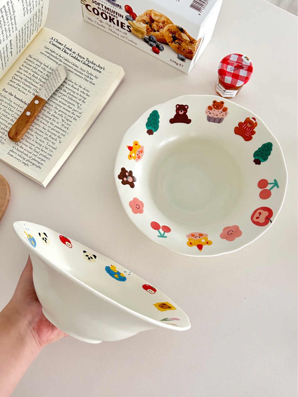 [Guohe 도자기] 만화 귀여운 딥 플레이트 수프 플레이트 세라믹 식기 가정용 바람 (저작권 제품)