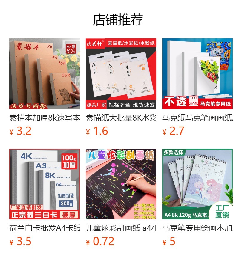 产品规格:A4(30*21cm)、16K(26.5*19cm)、8K(38*26.5cm)