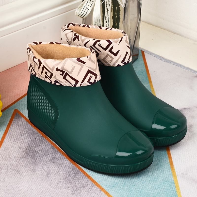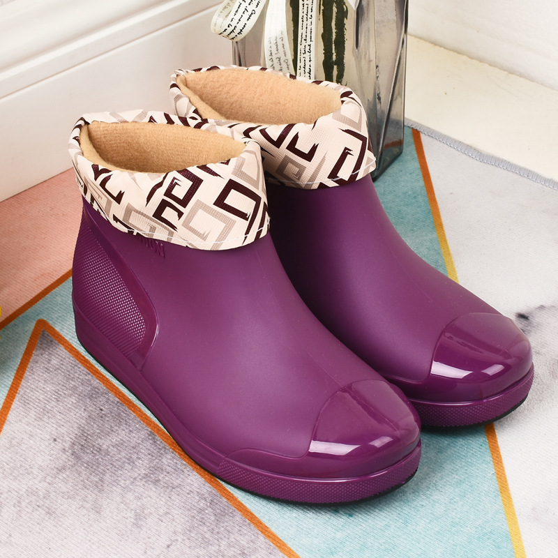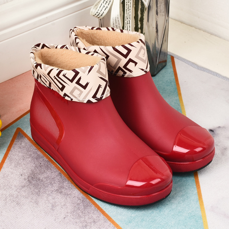 패션 여성용 장화 로우 탑 장화 짧은 미끄럼 방지 기모 워터 부츠 따뜻한 커버 신발 편안한 내마모성 청소년 편안한스토어 가기