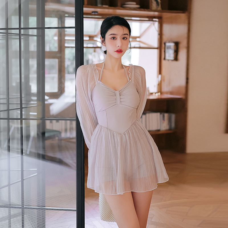 새로운 요정 팬 온천 수영복 여성의 배꼽 덮음 슬리밍 섹시한 긴팔 보수적 인 순수한 욕망 스커트 수영복스토어 가기