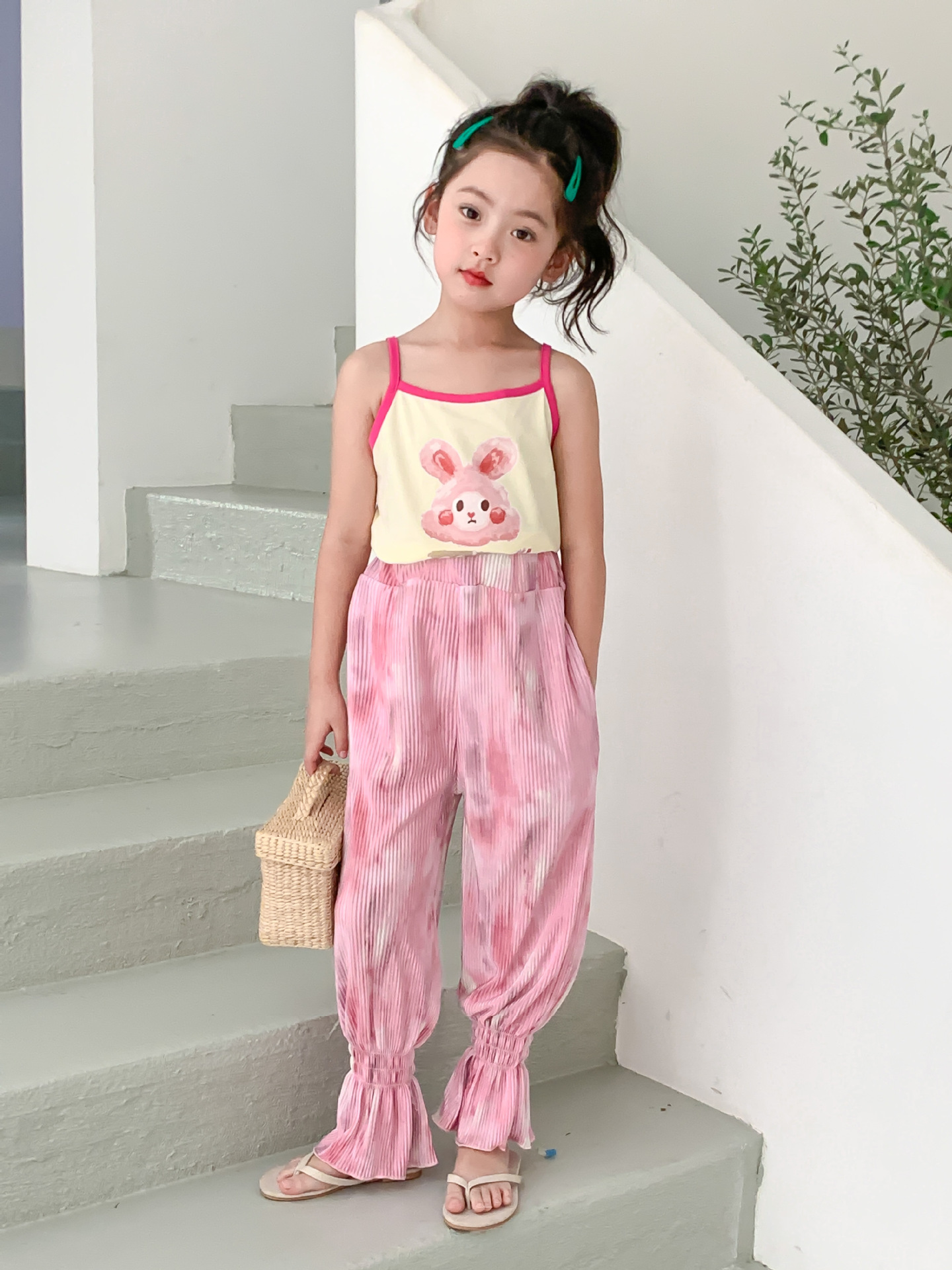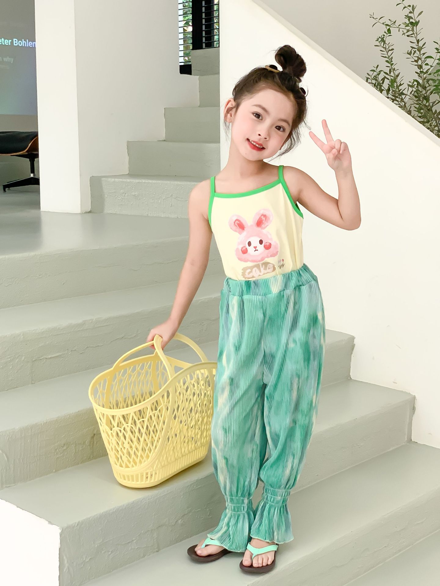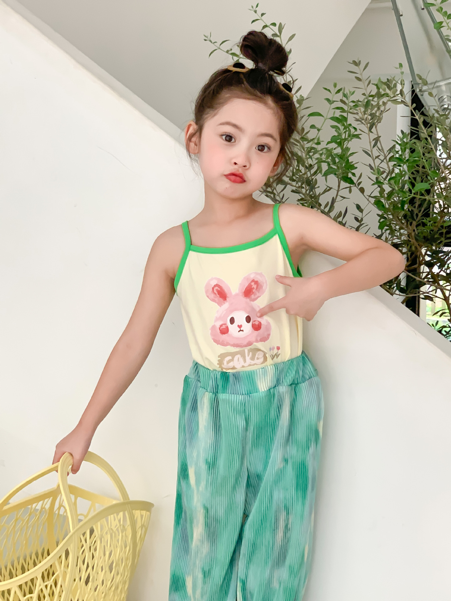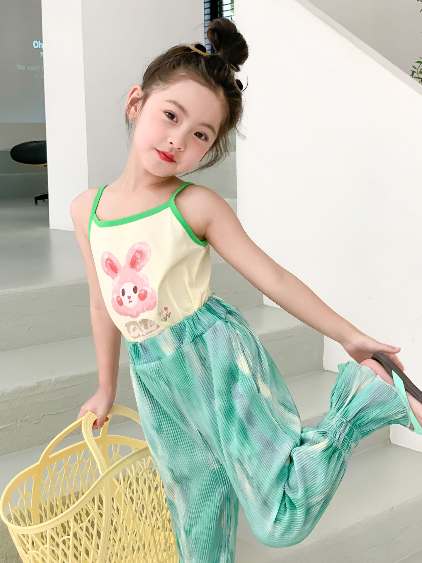 소녀의 만화 니트 슬링 + 쉬폰 바지 투피스 세트 Instagram 아동복 2023 여름 원피스 여성 아기 귀여운 세트