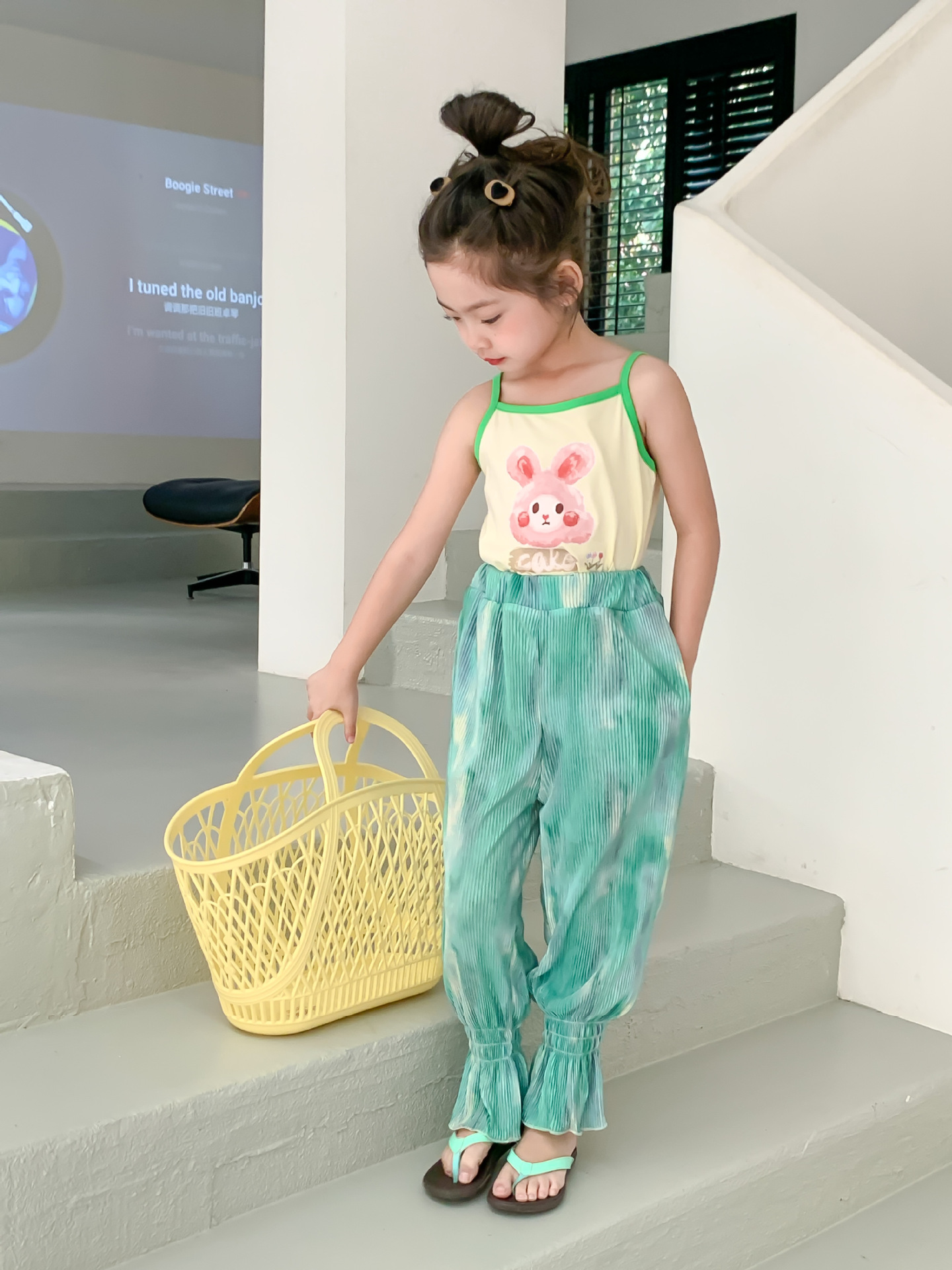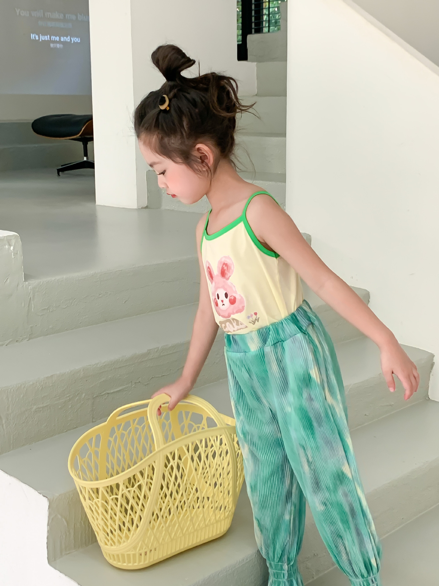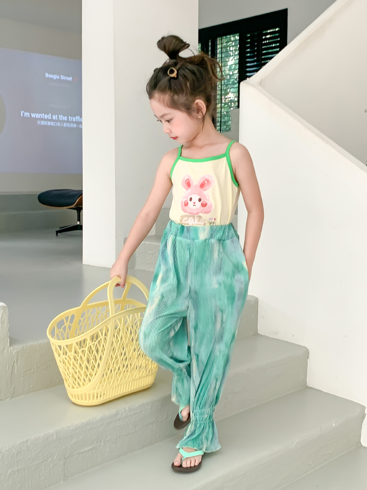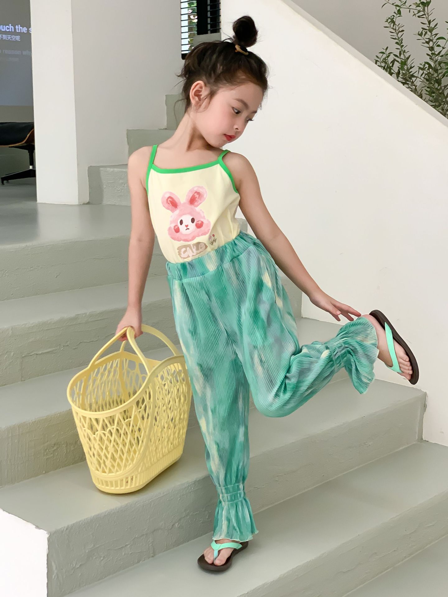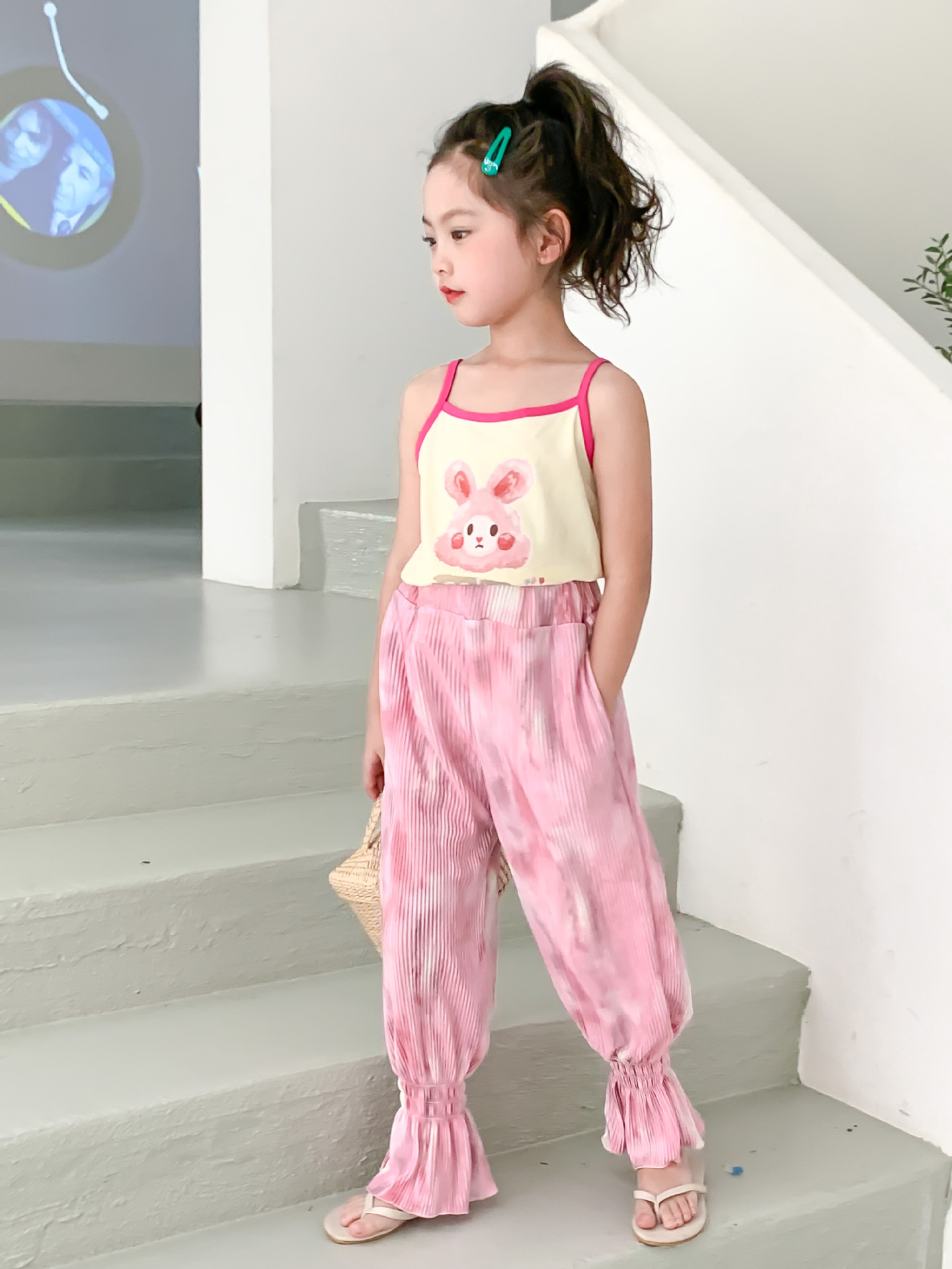 소녀의 만화 니트 슬링 + 쉬폰 바지 투피스 세트 Instagram 아동복 2023 여름 원피스 여성 아기 귀여운 세트