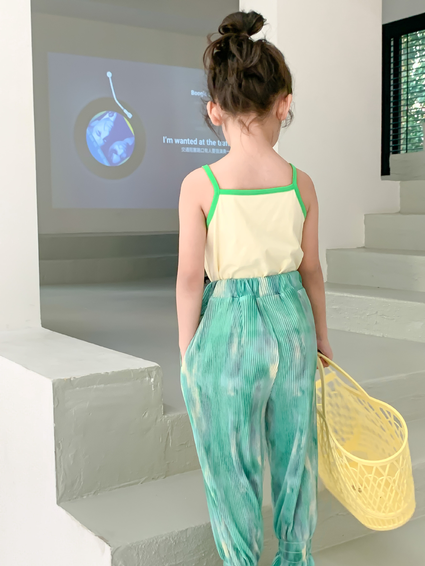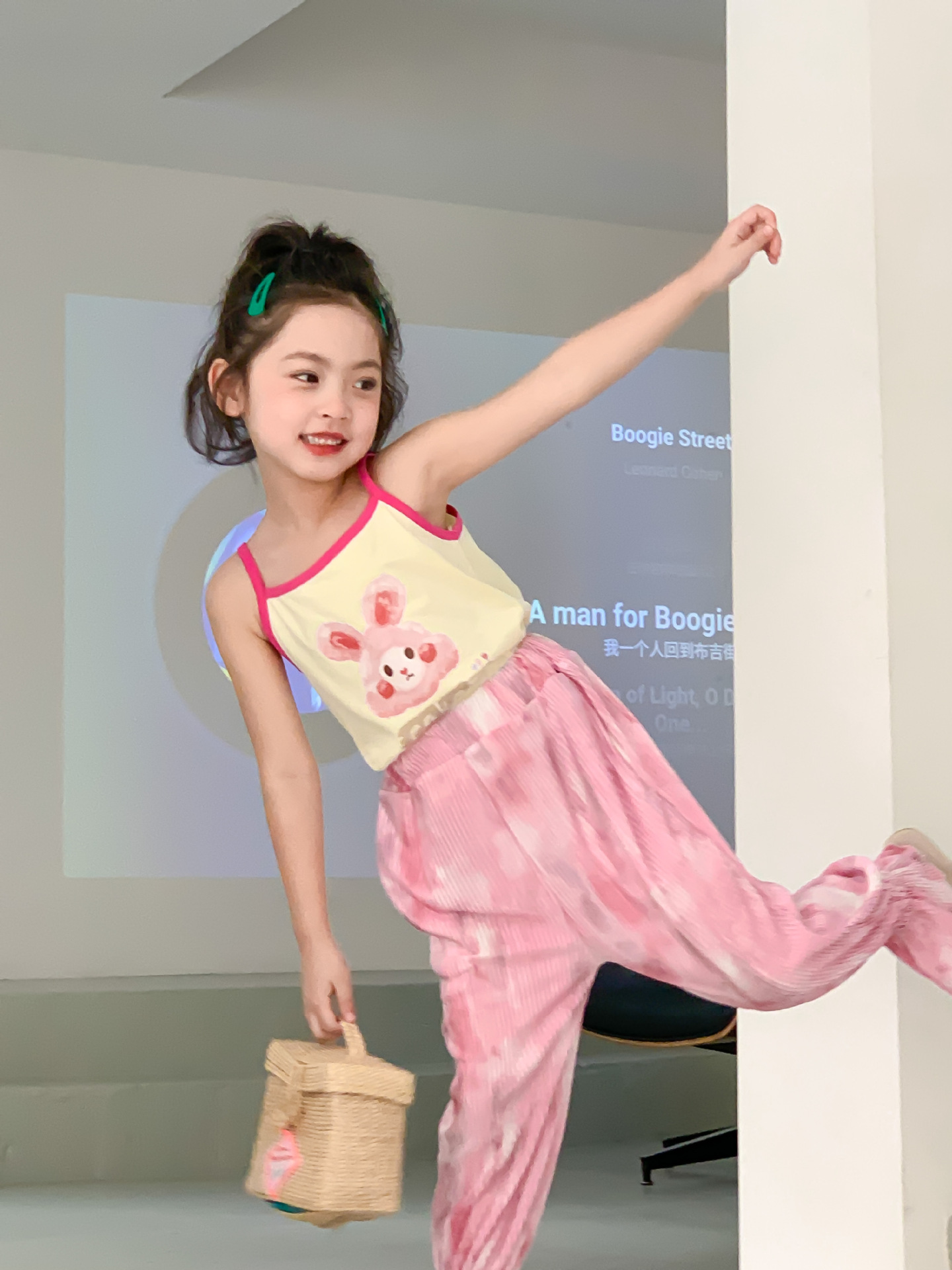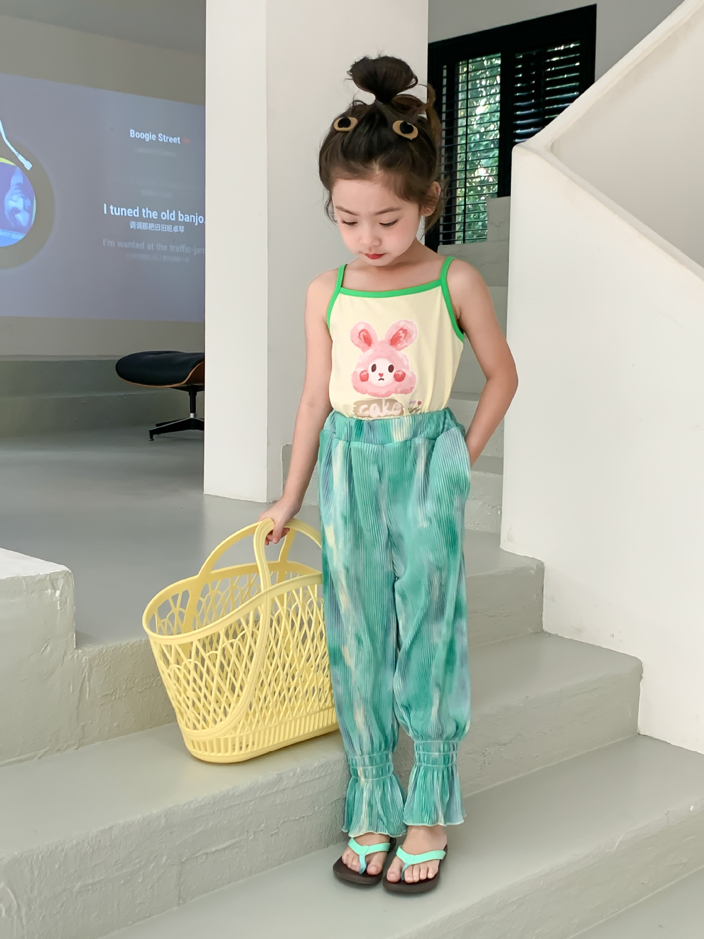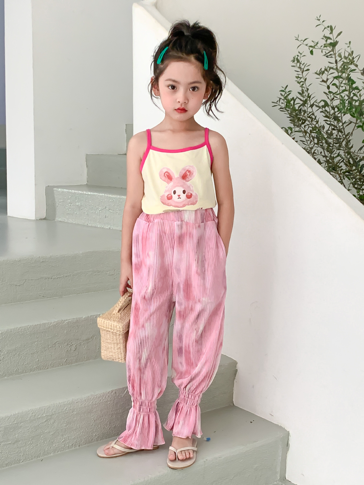 소녀의 만화 니트 슬링 + 쉬폰 바지 투피스 세트 Instagram 아동복 2023 여름 원피스 여성 아기 귀여운 세트