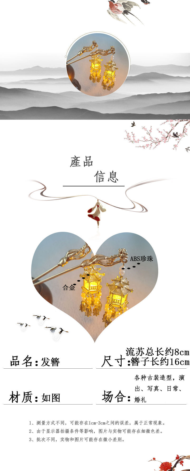축제 빛나는 등불 머리핀 여성의 새로운 중국 골동품 고급 감각 단계별 술 머리 머리핀 머리 장식 도매스토어 가기