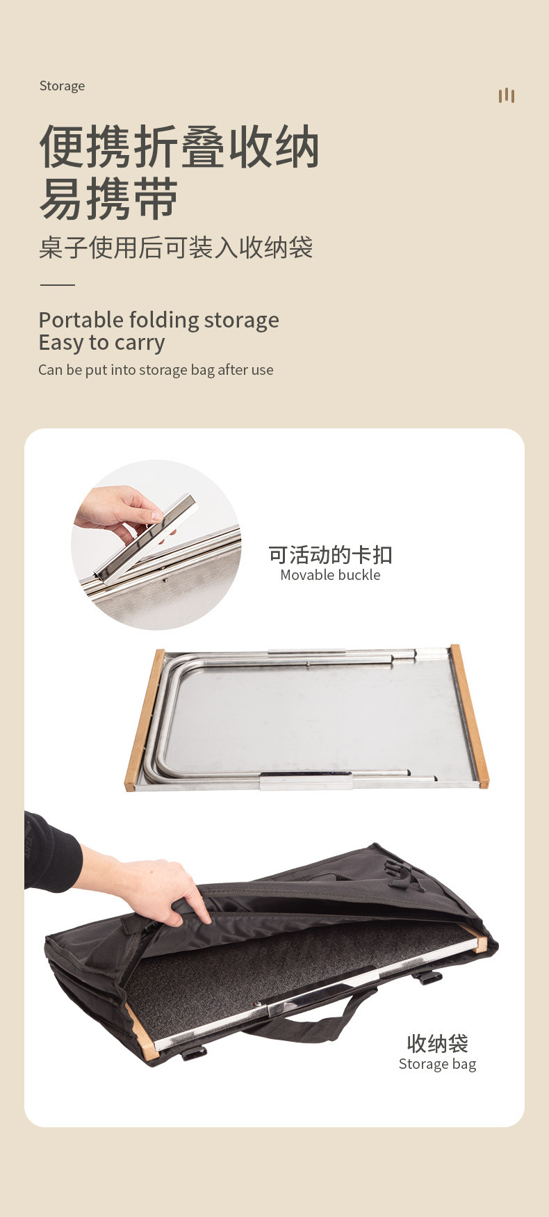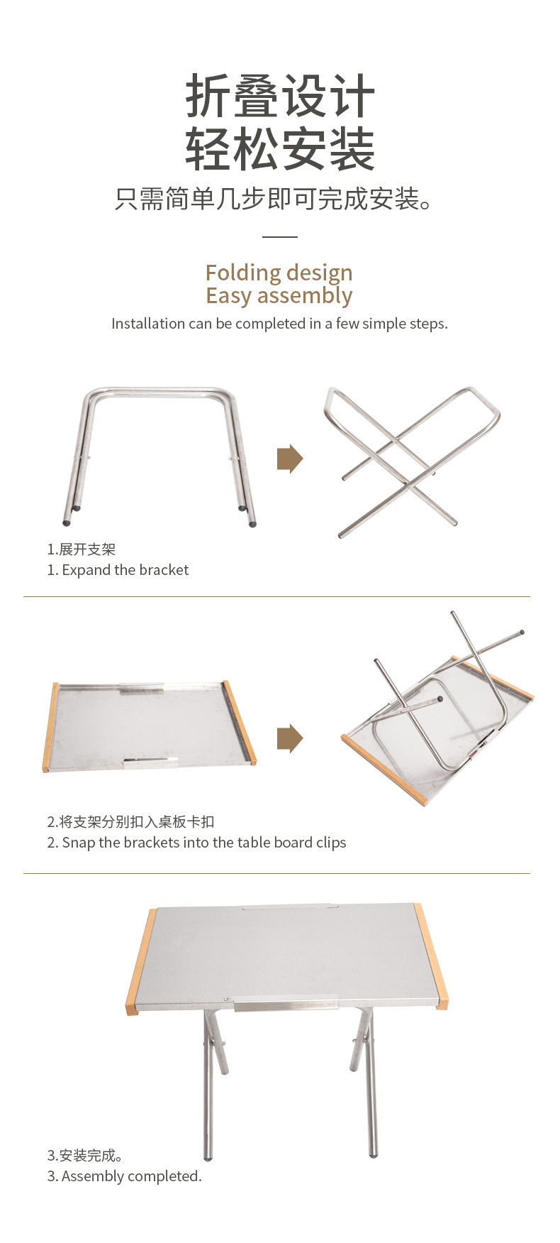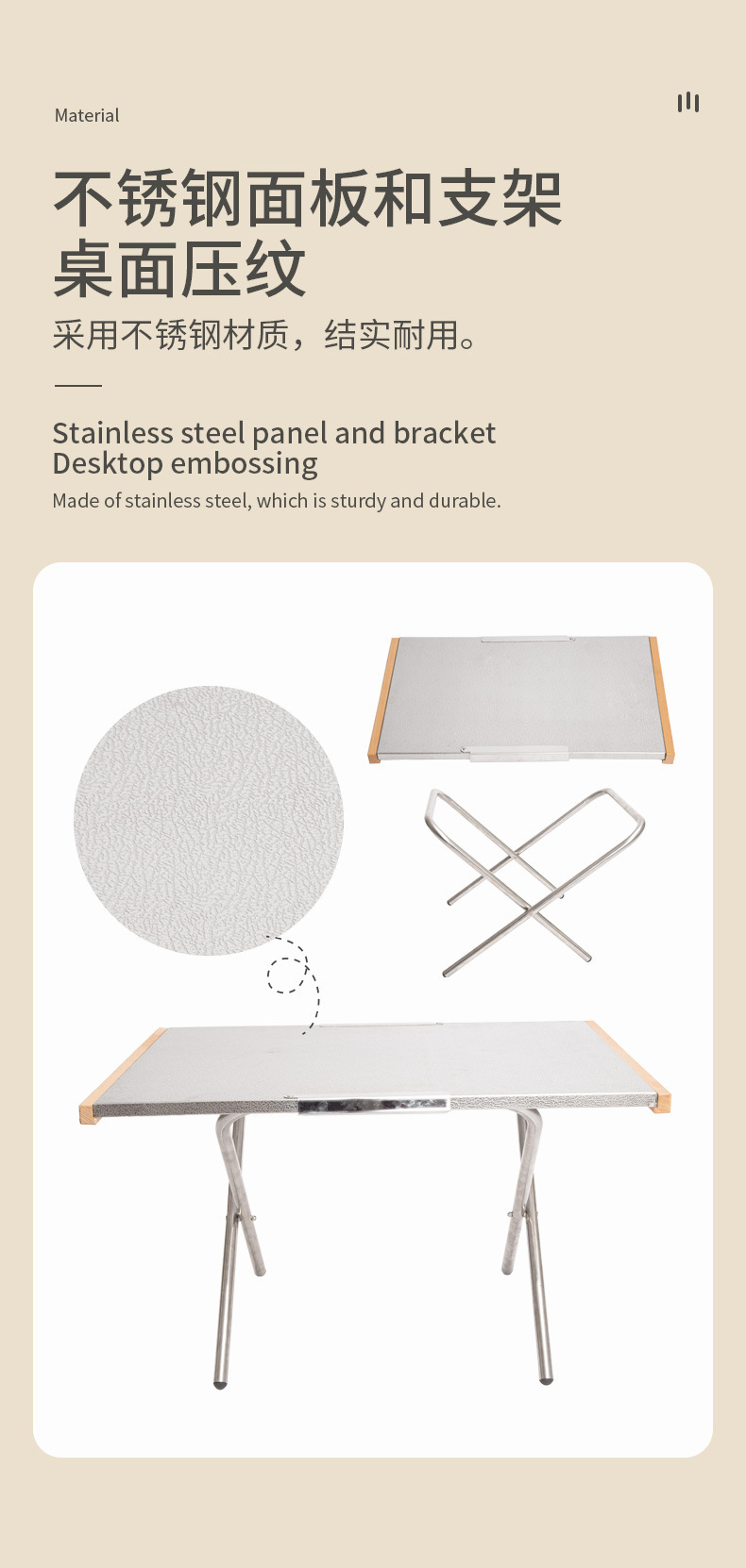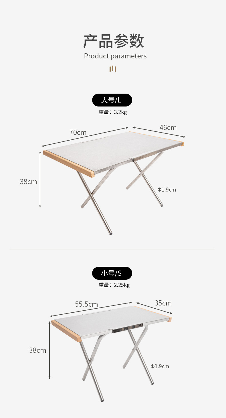 스테인레스 스틸 테이블 야외 캠핑 접이식 너도밤 나무 테이블 사이드 피크닉 테이블 캠핑 바베큐 패턴 도로 레저 테이블