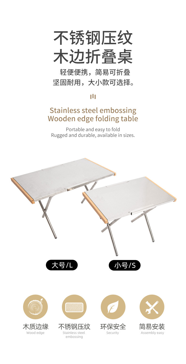 스테인레스 스틸 테이블 야외 캠핑 접이식 너도밤 나무 테이블 사이드 피크닉 테이블 캠핑 바베큐 패턴 도로 레저 테이블스토어 가기