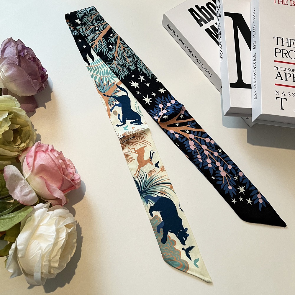수출 대외 무역 폭발 마야 정글 l 실크 스카프 넥타이 가방 핸들 긴 리본 실크 얇은 좁은 리본 스카프스토어 가기