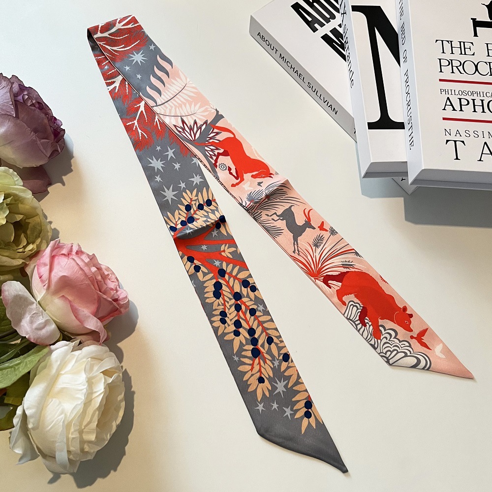 수출 대외 무역 폭발 마야 정글 l 실크 스카프 넥타이 가방 핸들 긴 리본 실크 얇은 좁은 리본 스카프
