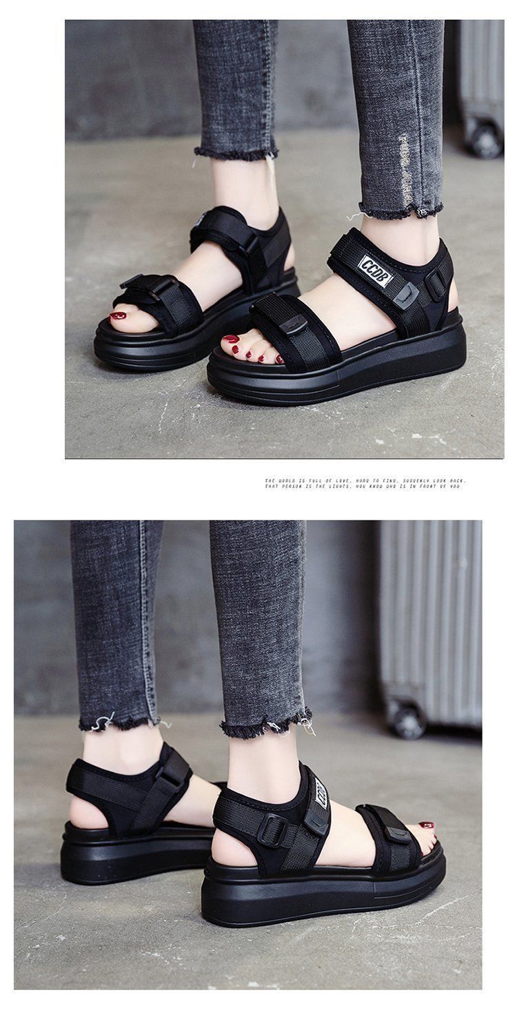 샌들 여성용 2023 새로운 여름 머핀 두꺼운 바닥 모든 경기 여성 신발 폭발 부드러운 바닥 스포츠 비치 캐주얼 신발