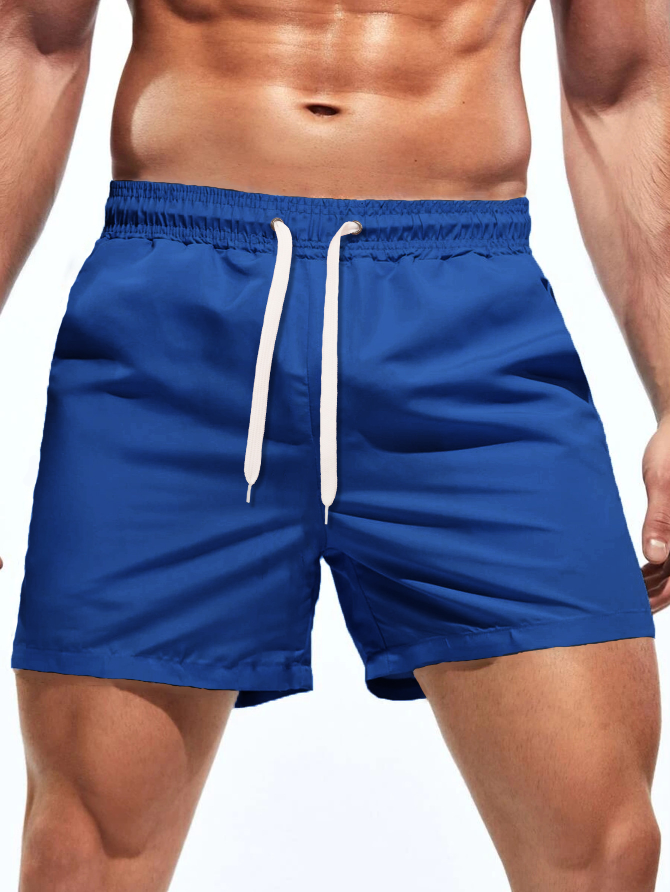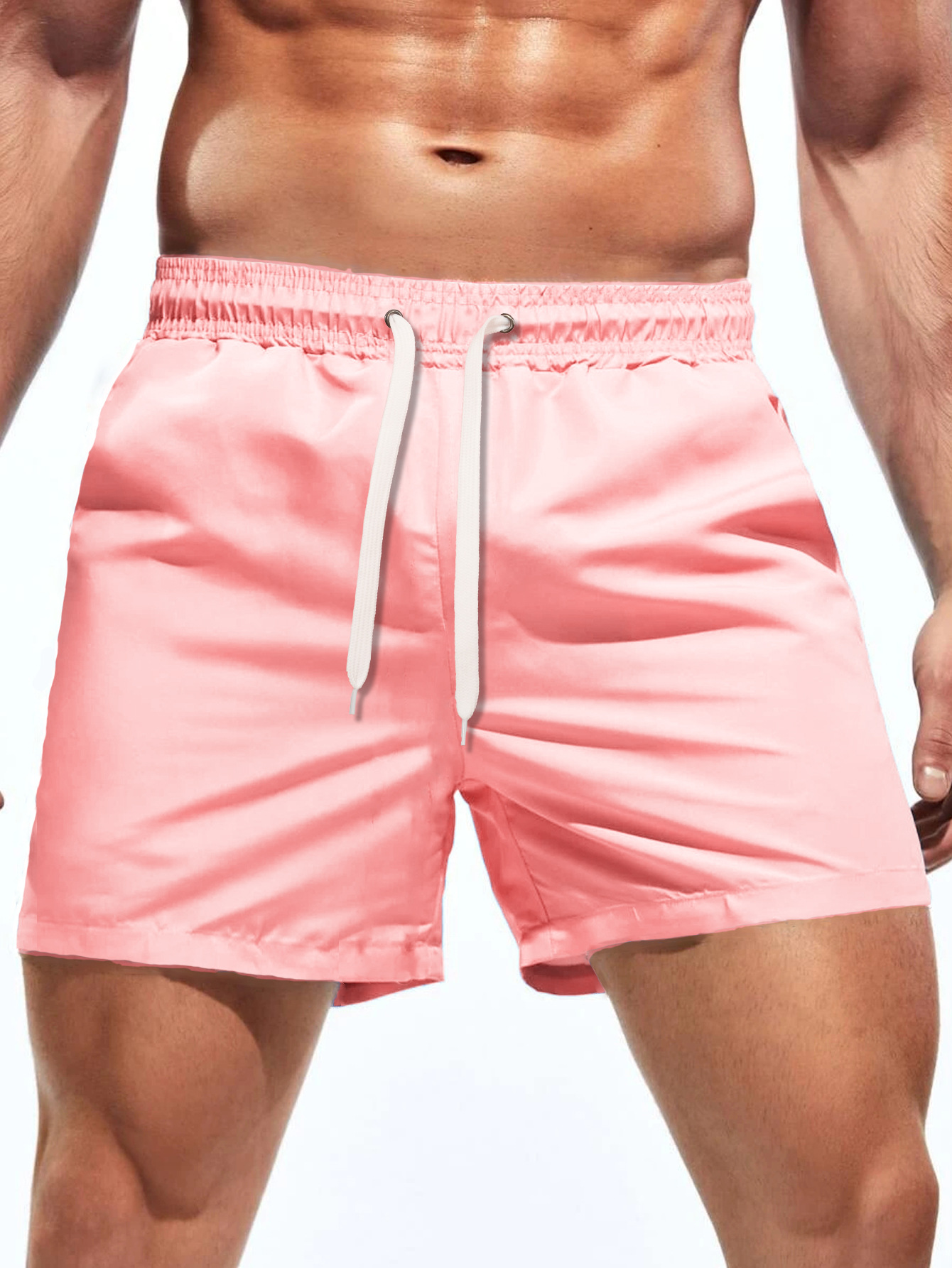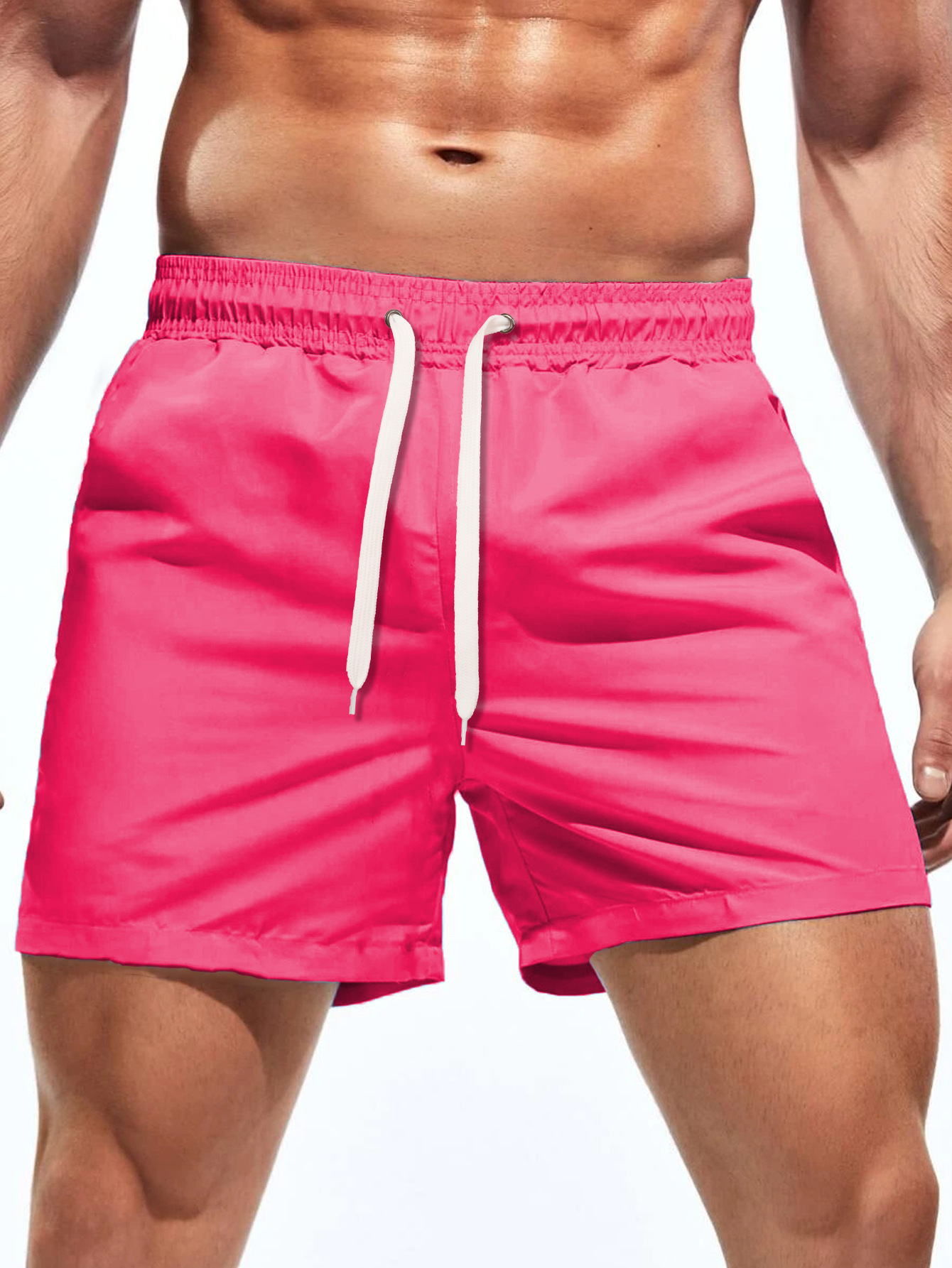 남성 캐주얼 바지 모든 매치 단색 느슨한 속건 방수 스포츠 피트니스 바지 크로스 보더 반바지 플러스 사이즈 더블 레이어 수영 바지