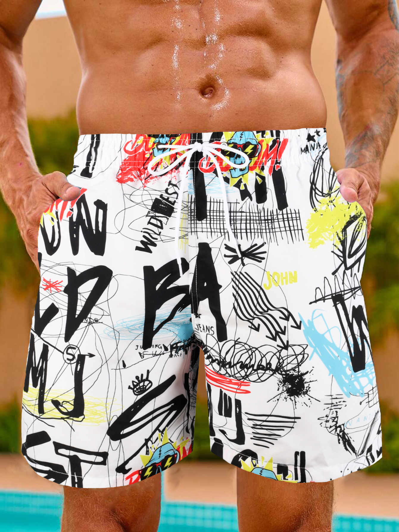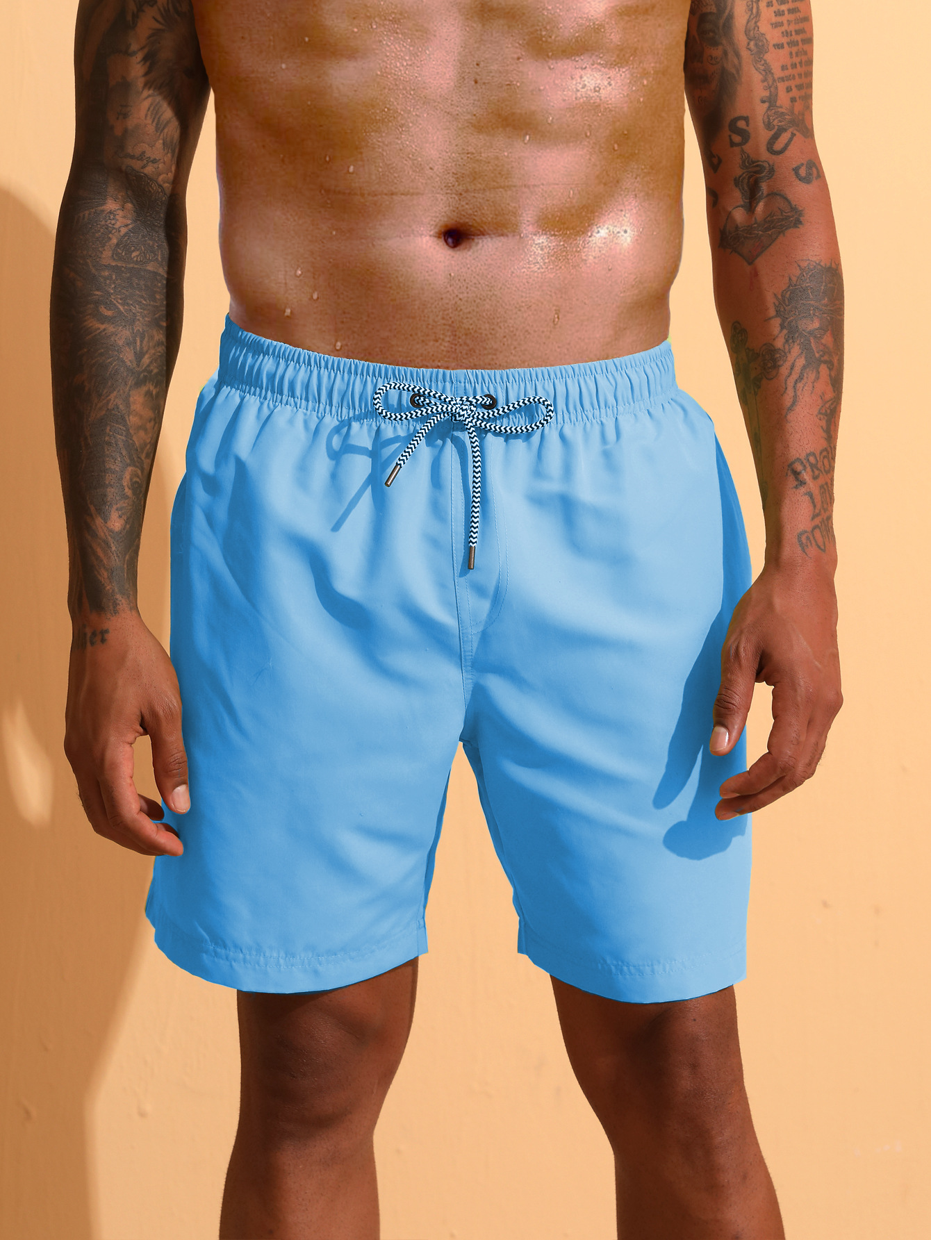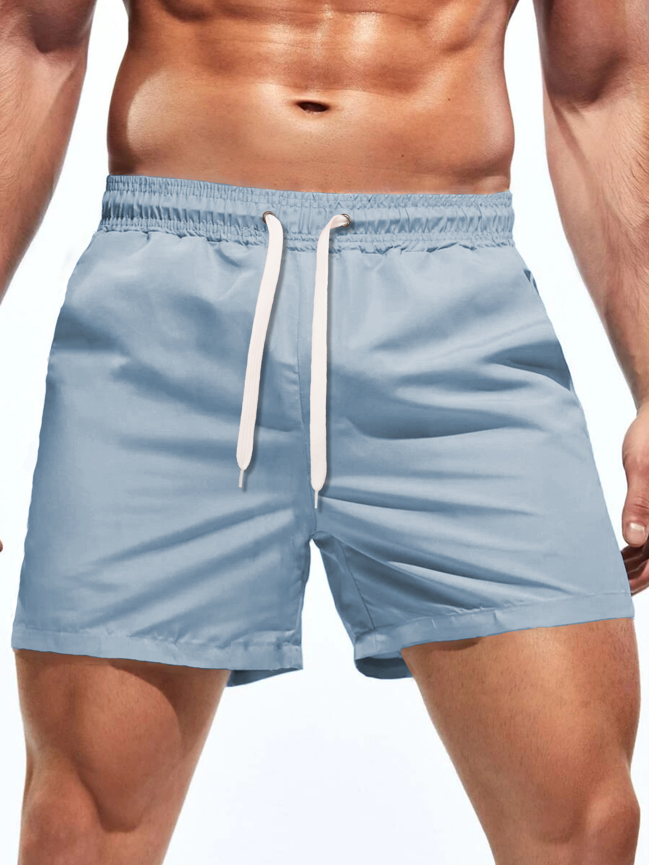 남성 캐주얼 바지 모든 매치 단색 느슨한 속건 방수 스포츠 피트니스 바지 크로스 보더 반바지 플러스 사이즈 더블 레이어 수영 바지