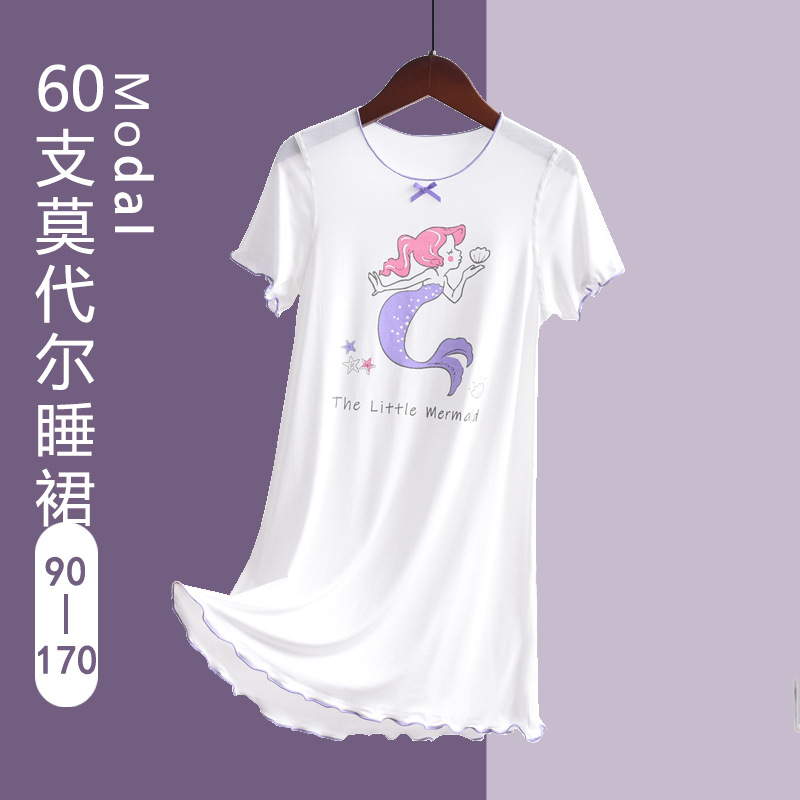 60 Modal Yokos Girls 잠옷 부모-자식 어머니와 딸 봄과 여름 반팔 초박형 어린이 공주 스타일 잠옷