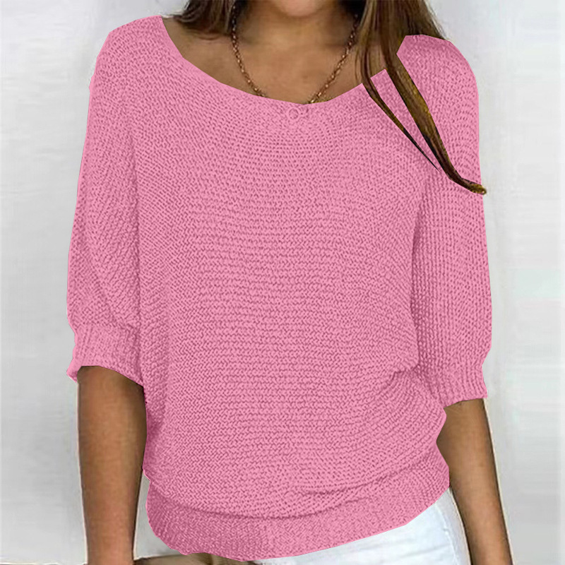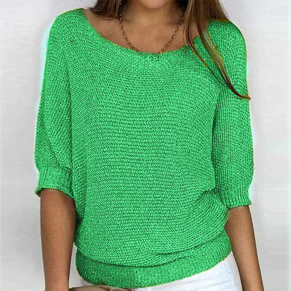 봄 새로운 크로스 보더 유럽 및 미국 스타일 솔리드 컬러 라운드 넥 스웨터 여성용 출퇴근 우아한 7 소매 탑 에어컨 셔츠스토어 가기