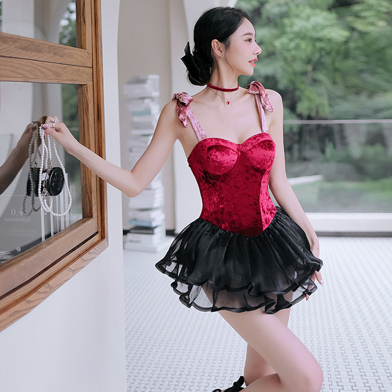 섹시한 수영복 여자의 한국 사이버 연예인 원피스 투투 스커트 스틸 브래킷 모여 아름다운 다시 레이스 업 온천 휴가 수영복스토어 가기