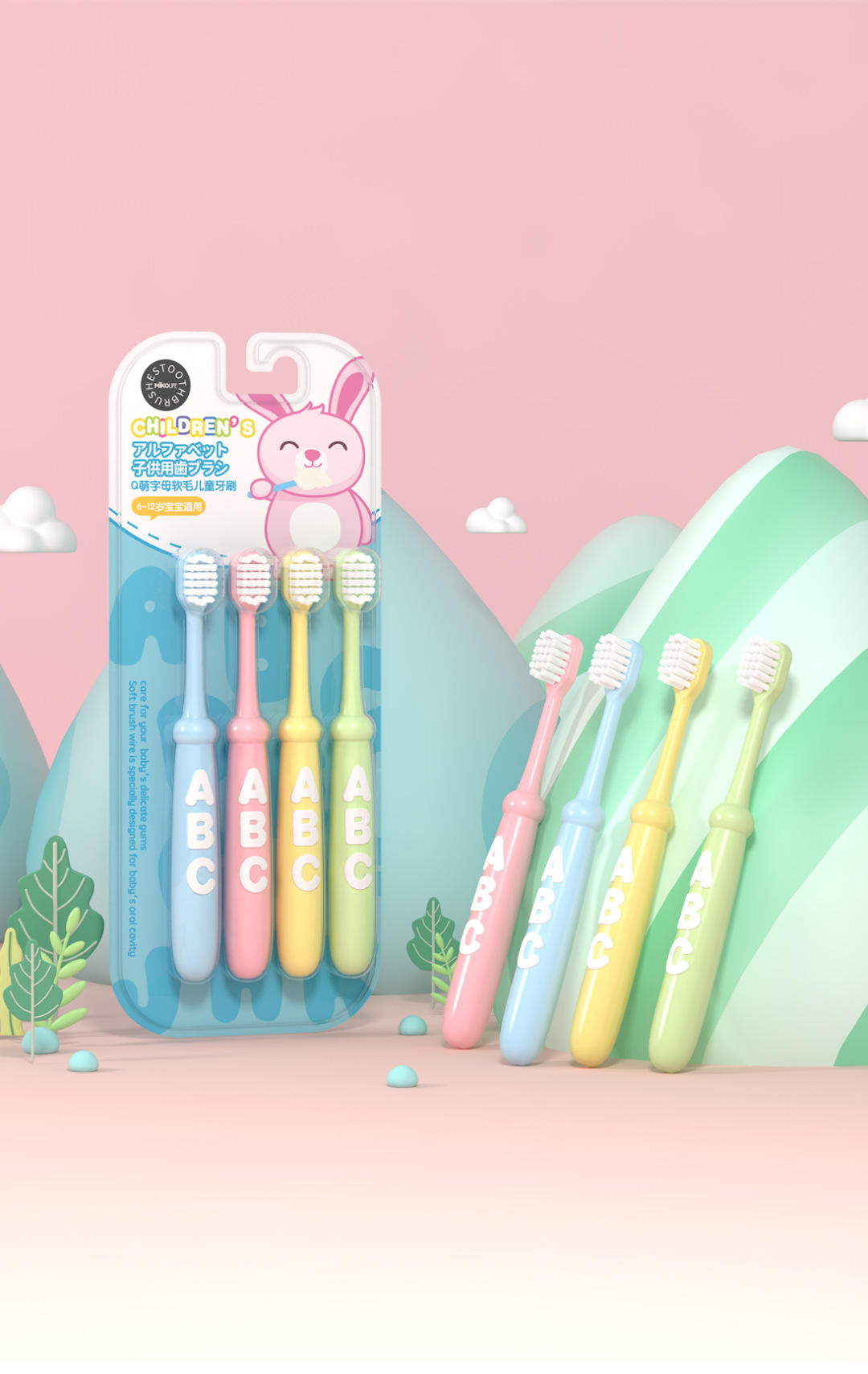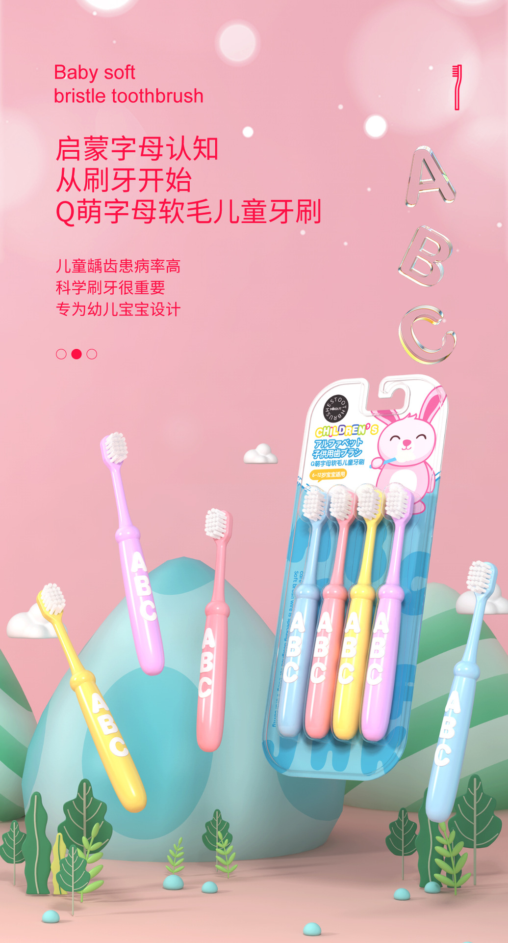 알파벳 어린이 칫솔 부드러운 모 정품 만화 캐릭터 4개입 3-6-12세 아기 청소용 귀여운 도매 공장스토어 가기