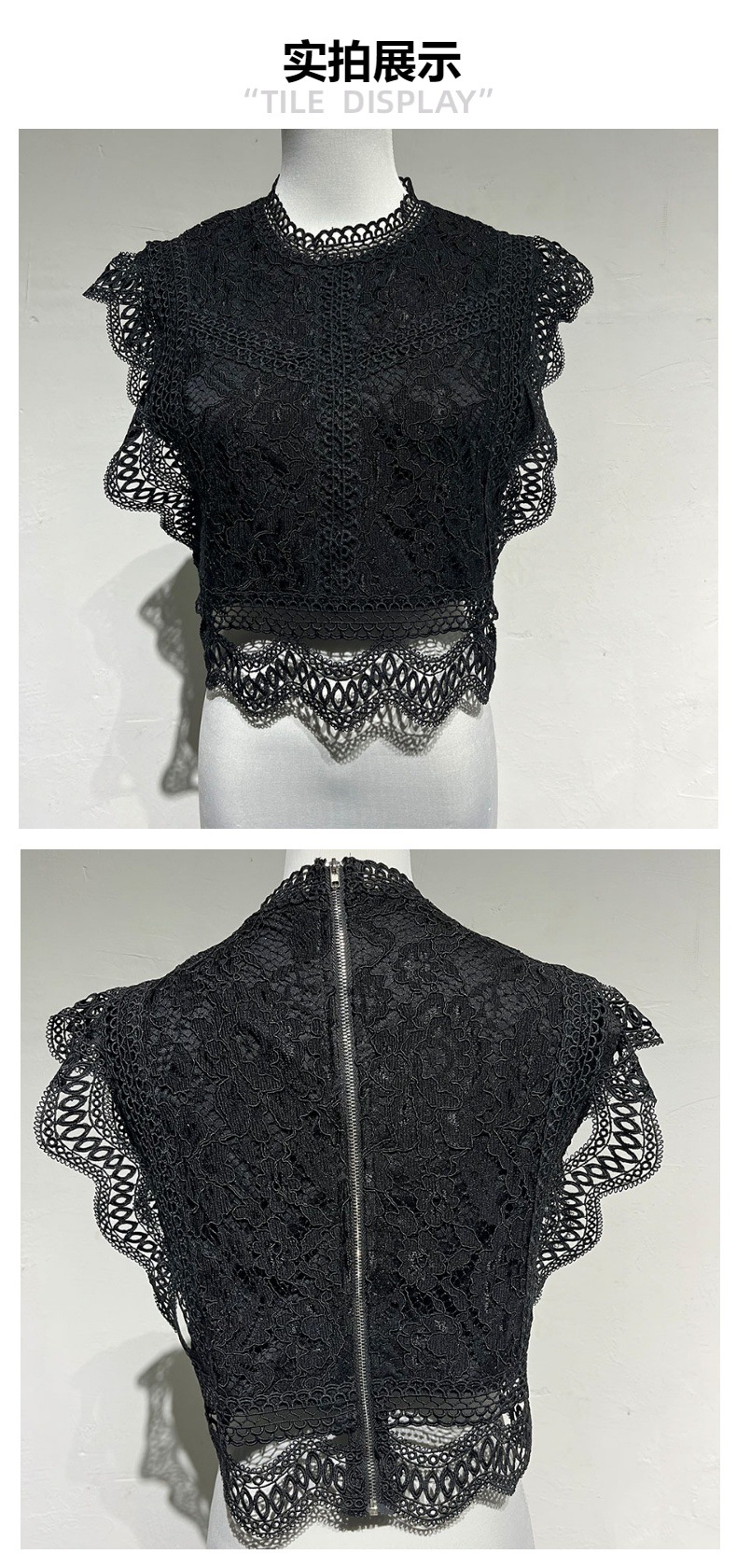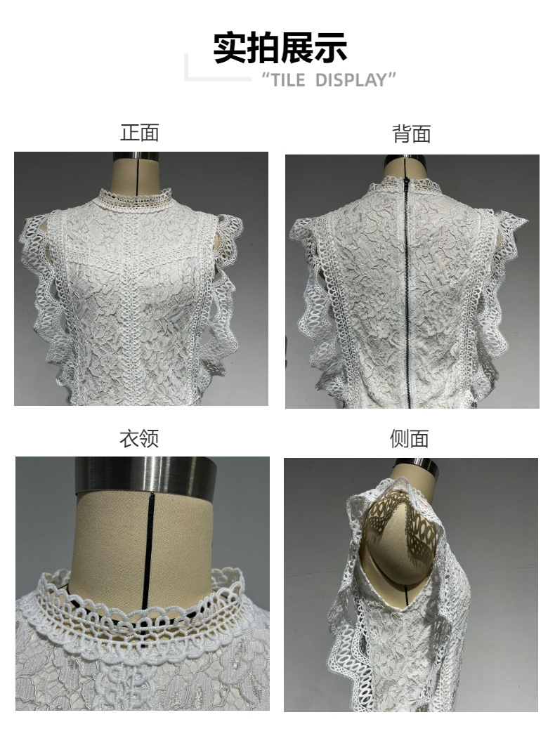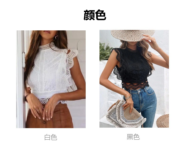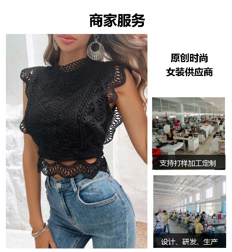 2024 여름 새로운 아마존 유럽과 미국의 뜨거운 판매 섹시한 중공 솔리드 컬러 기하학 여성 탑 레이스 쉬폰 셔츠스토어 가기