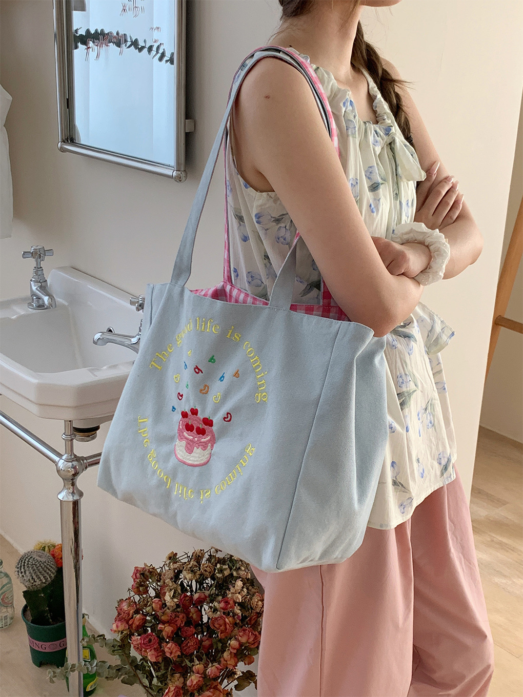 • 우리의 이중 목적 캔버스 가방 핑크
