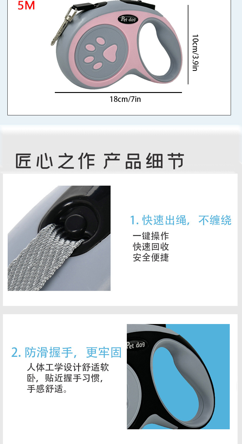 아마존의 새로운 발 인쇄 개 자동 개폐식 견인 로프 폭발 방지 개폐식 견인기 야외 개 산책 체인스토어 가기