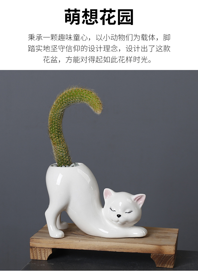크리 에이 티브 귀여운 고양이 꼬리 기둥 화분 세라믹 크로스 보더 만화 동물 크리 에이 티브 다육 원숭이 꼬리 기둥 선인장 꽃스토어 가기