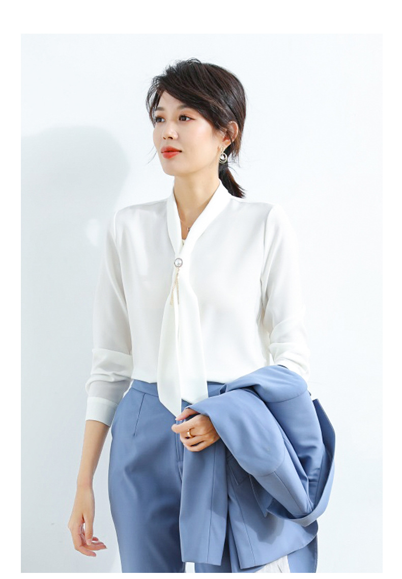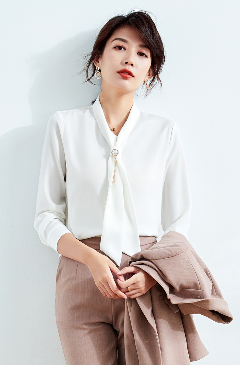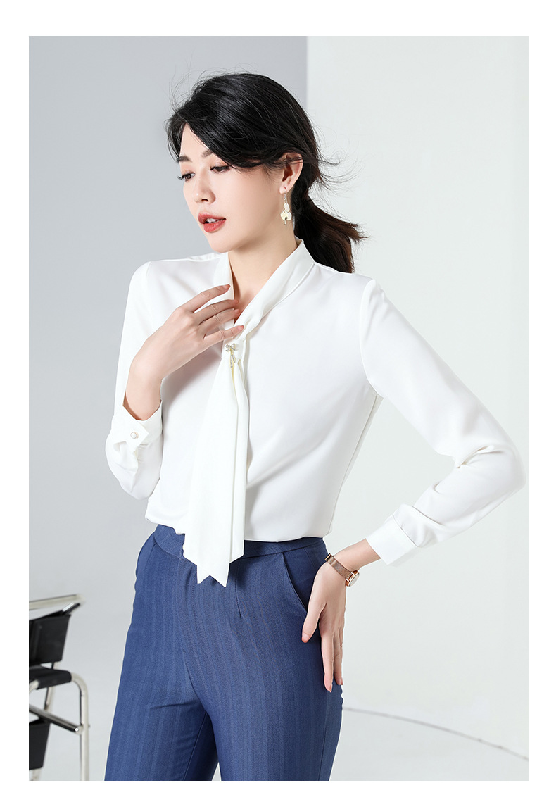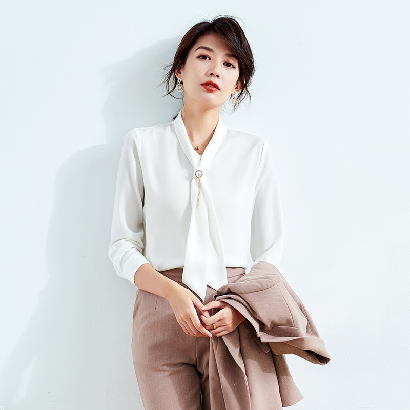 쉬폰 셔츠 여성 고급스러운 신상 화이트 긴팔 비즈니스 셔츠 패셔너블한 OL 스타일 리본 셔츠 도매스토어 가기