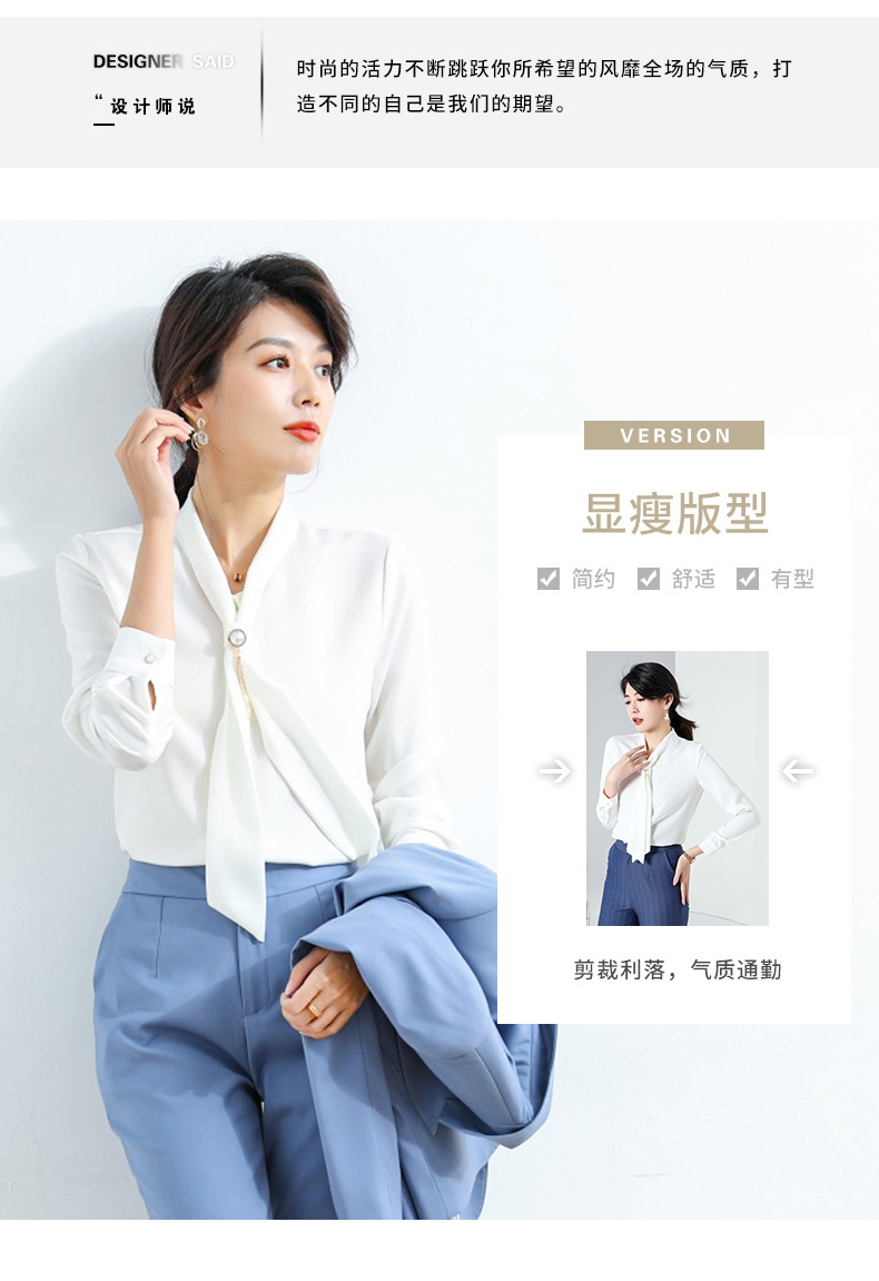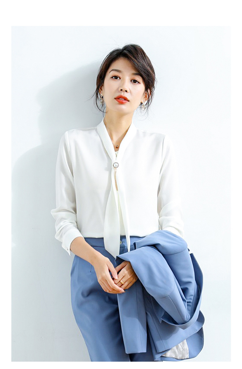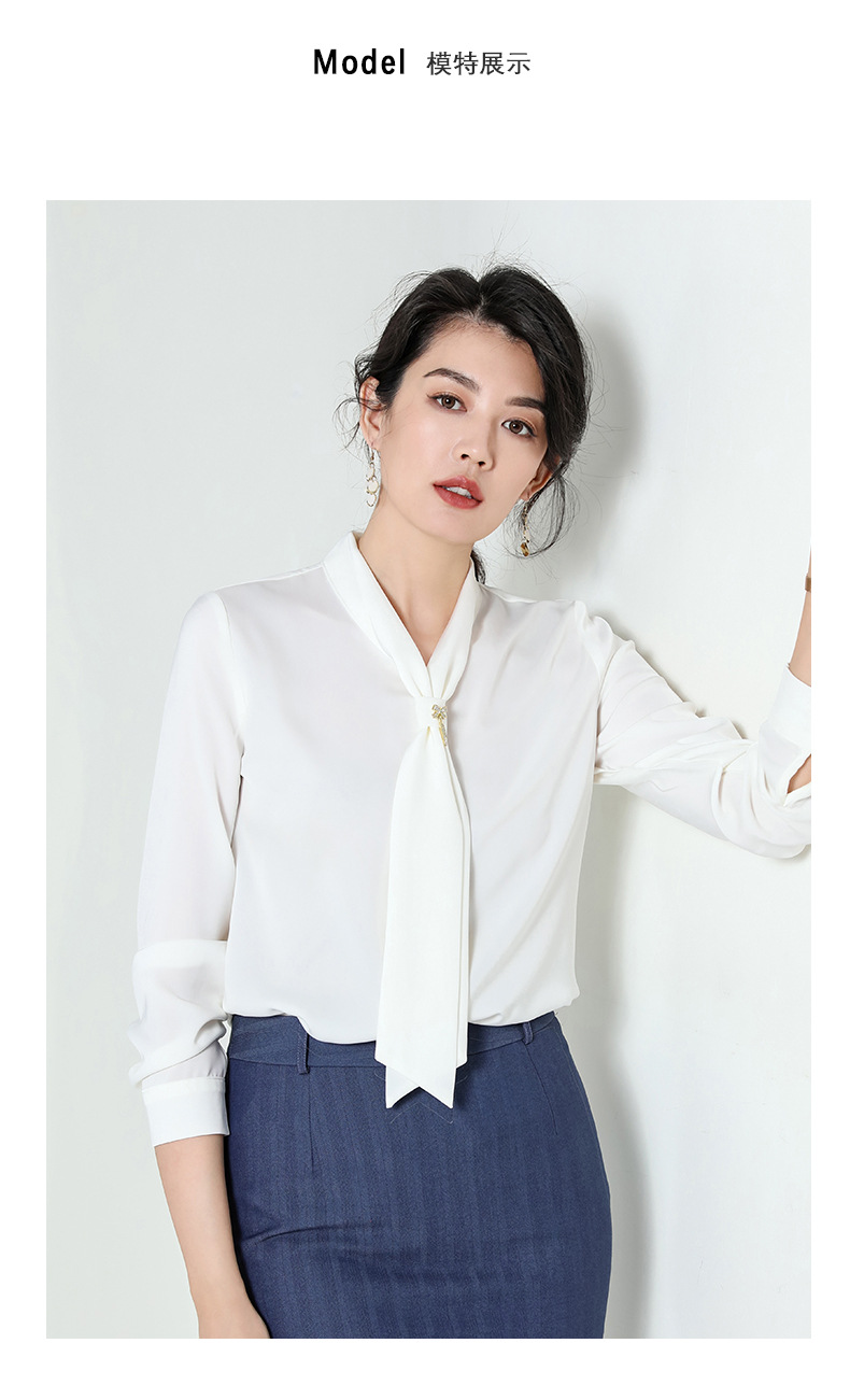 쉬폰 셔츠 여성 고급스러운 신상 화이트 긴팔 비즈니스 셔츠 패셔너블한 OL 스타일 리본 셔츠 도매스토어 가기