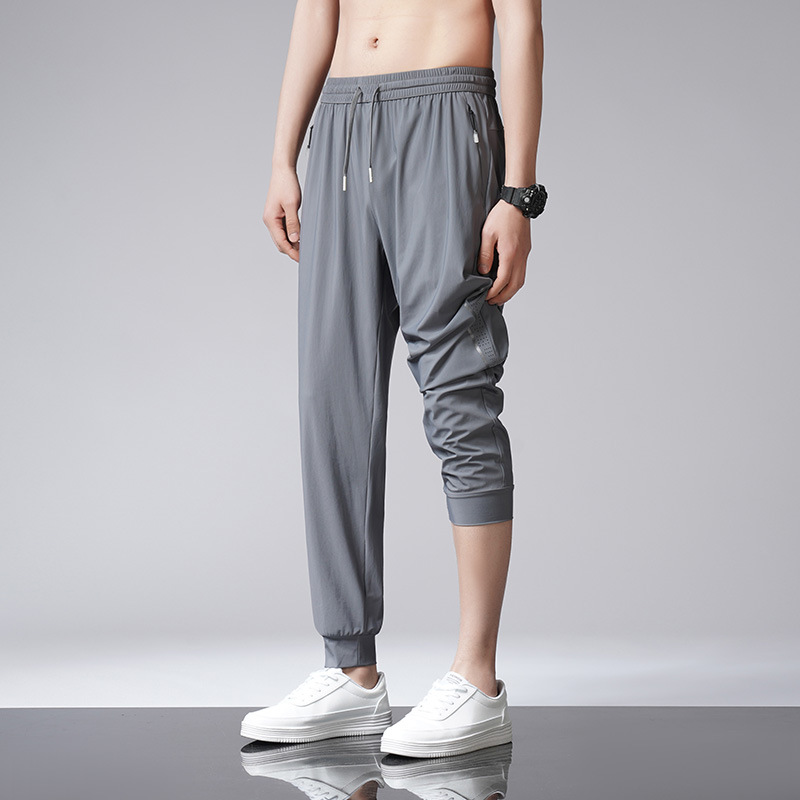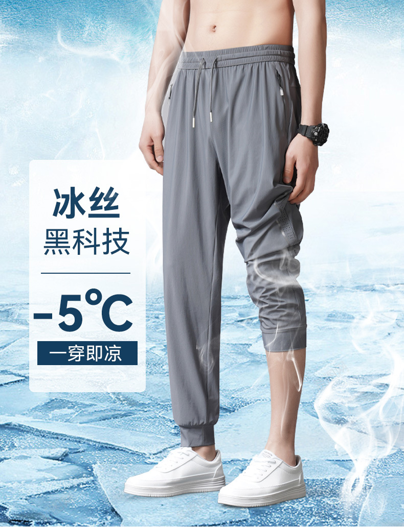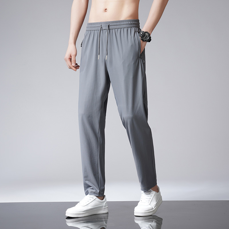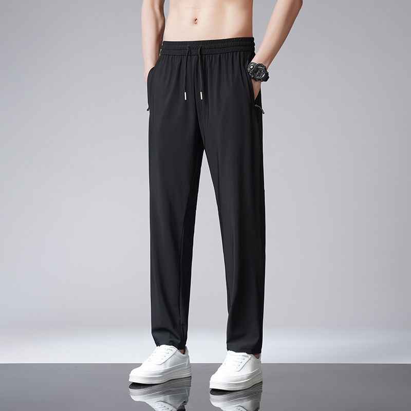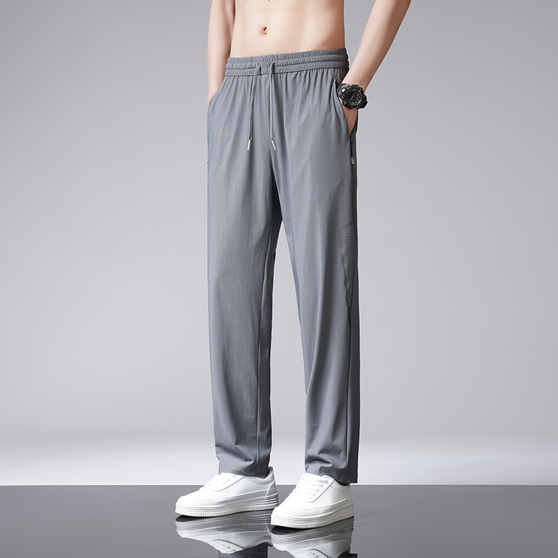 바지 남성용 얇은 여름 플러스 사이즈 캐주얼 바지 느슨한 스트레이트 드레이핑 남성용 아이스 실크 속건 에어컨 스포츠 바지스토어 가기