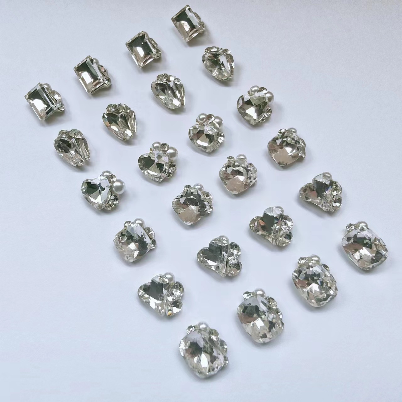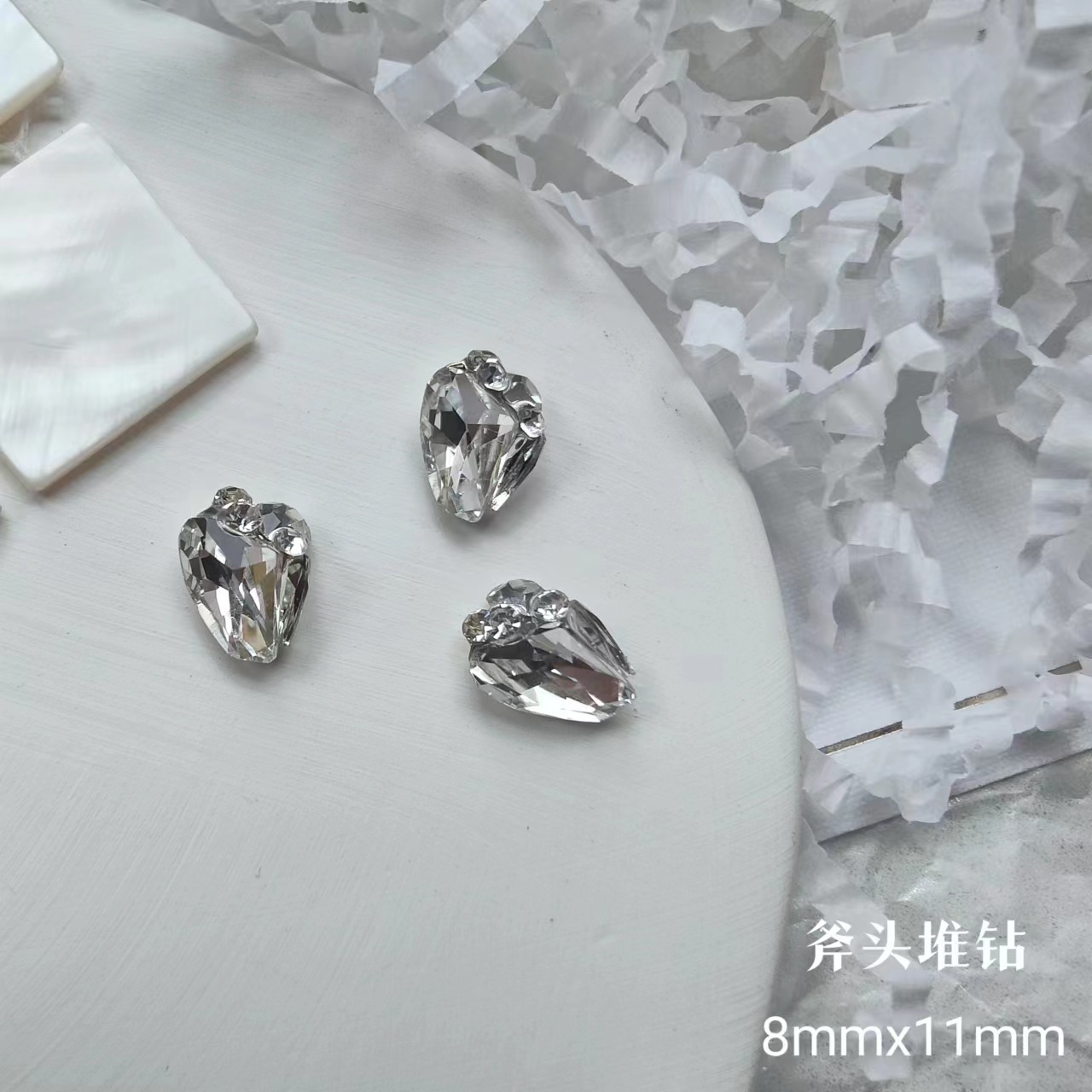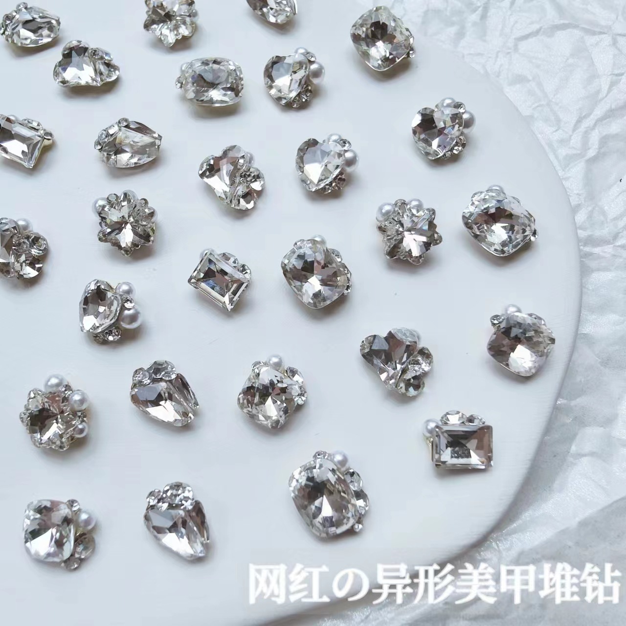 인터넷 연예인 폭발 네일 아트 크리스탈 외계인 더미 드릴 완료 슈퍼 플래시 비뚤어진 심장 직사각형 도끼 진주 네일 장식