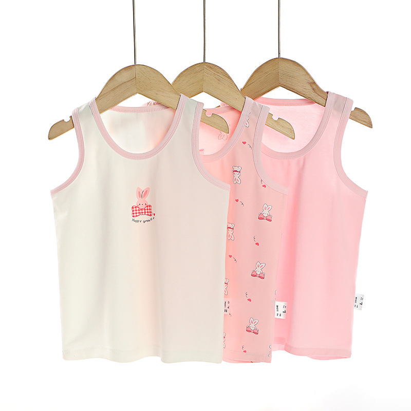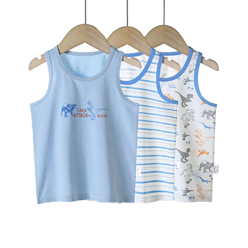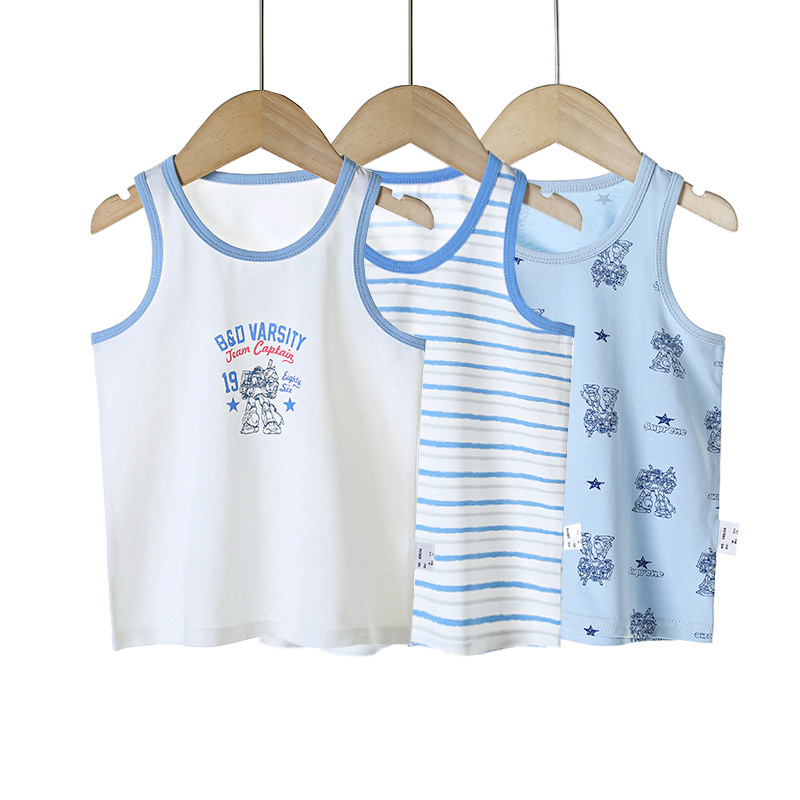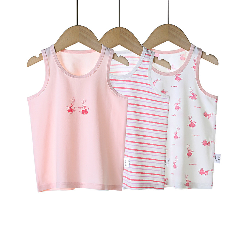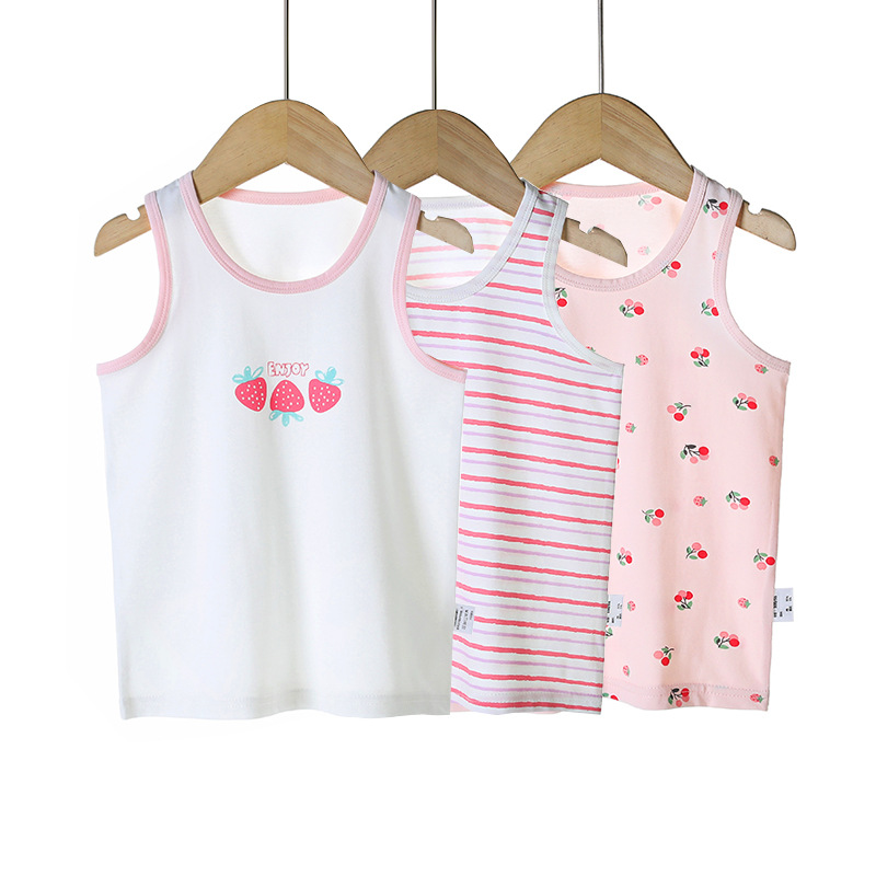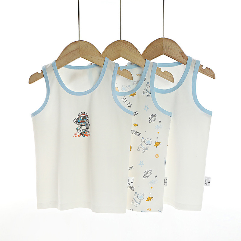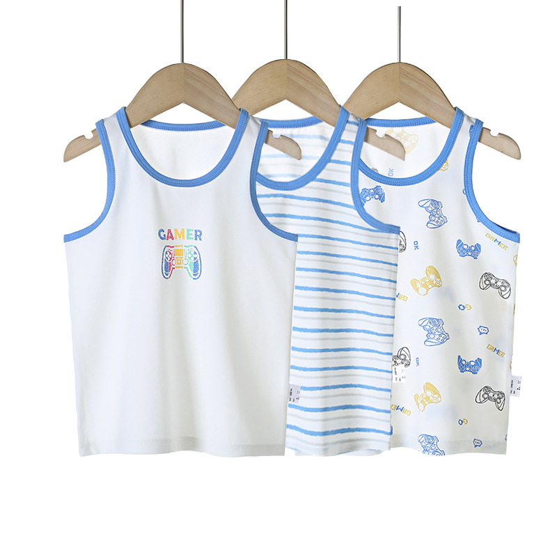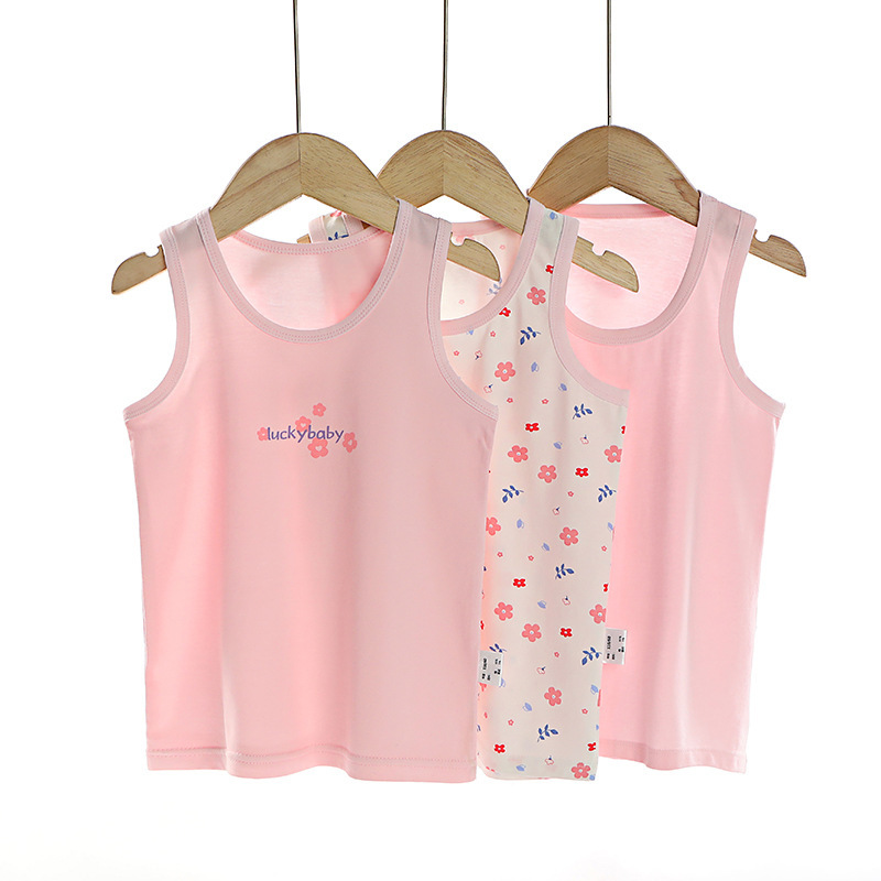 3 피스 세트 봄과 여름 새로운 라이크라 코튼 새로운 어린이 조끼 소녀 바닥 조끼 얇은 내복 소년 조끼스토어 가기