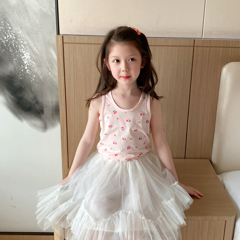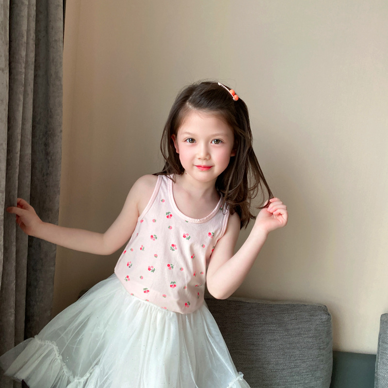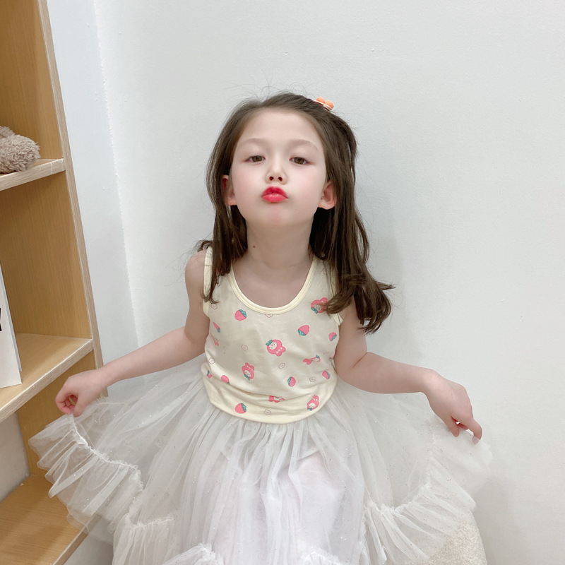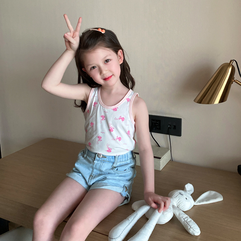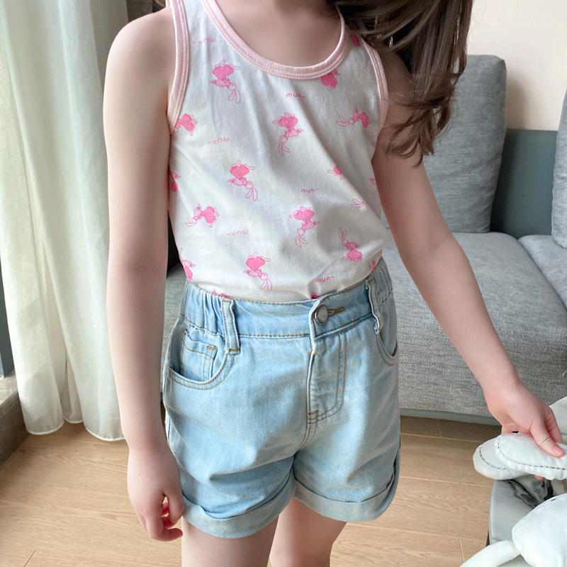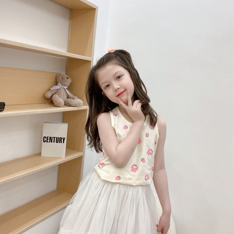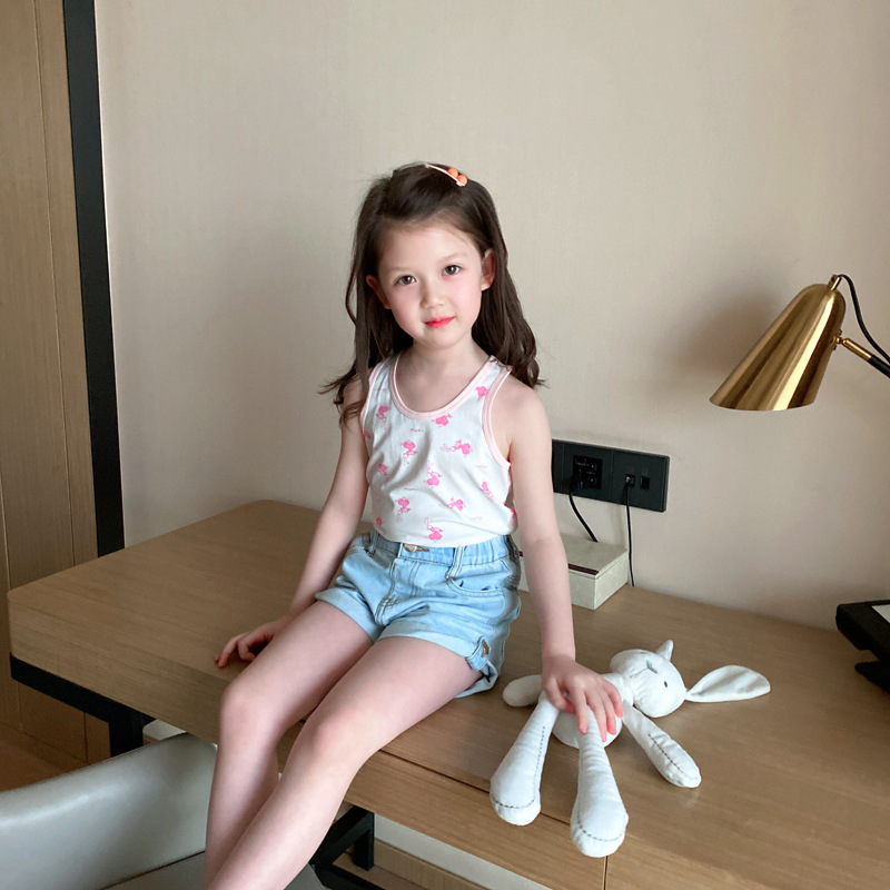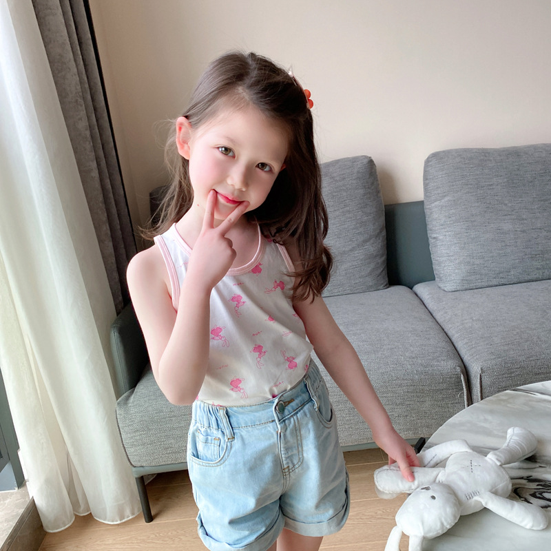 3 피스 세트 봄과 여름 새로운 라이크라 코튼 새로운 어린이 조끼 소녀 바닥 조끼 얇은 내복 소년 조끼스토어 가기