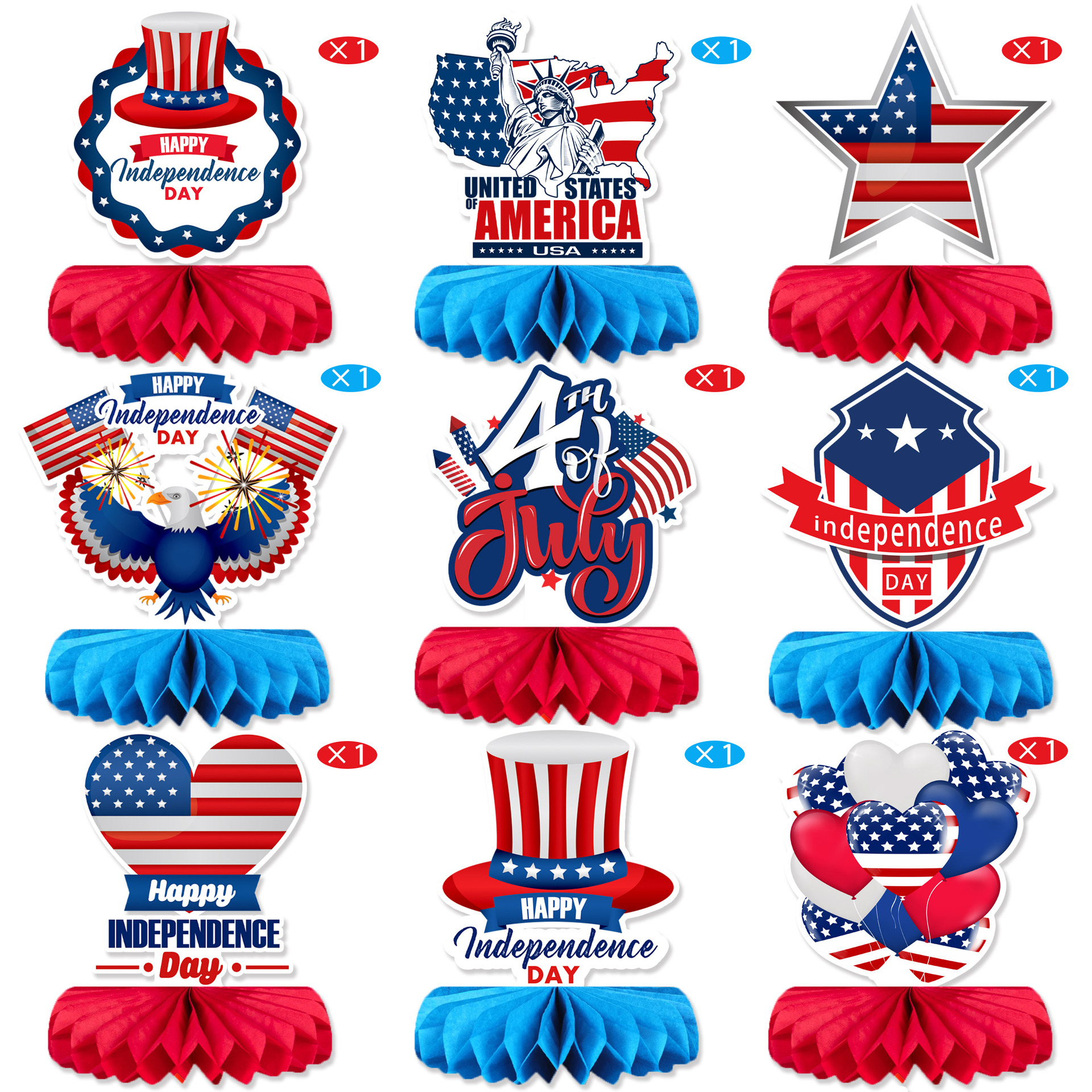跨境美国独立日派对装饰蜂窝摆件欧美USA国庆桌面纸扇蜂窝球挂饰