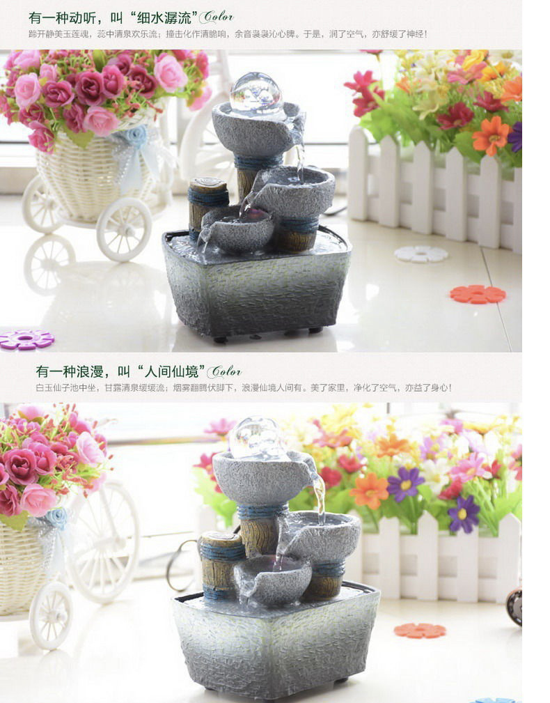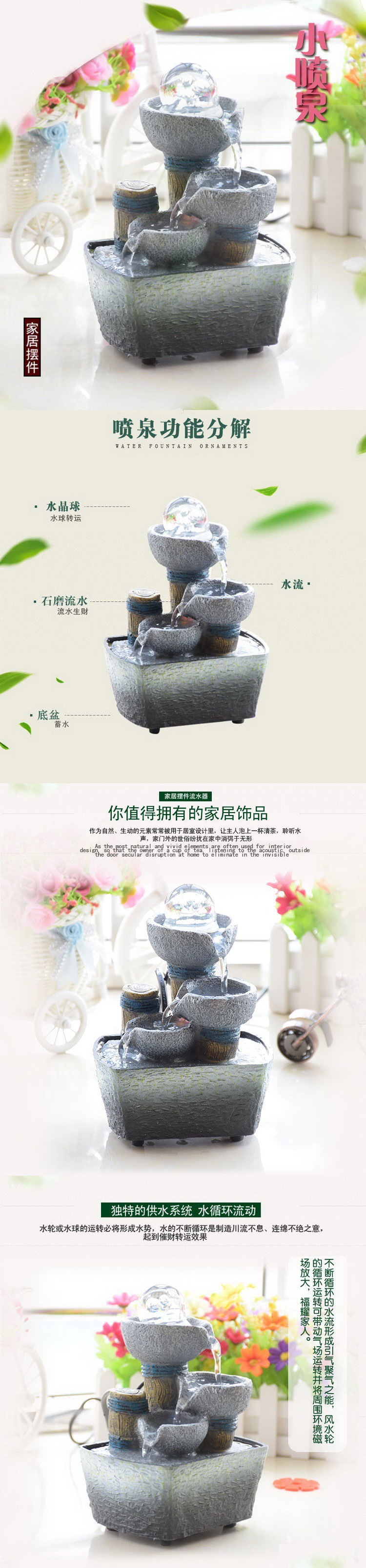 유럽 스타일의 흐르는 물 분수 풍수 바퀴 작은 장식품 사무실 크리 에이 티브 선물 홈 인테리어 데스크탑 대나무스토어 가기