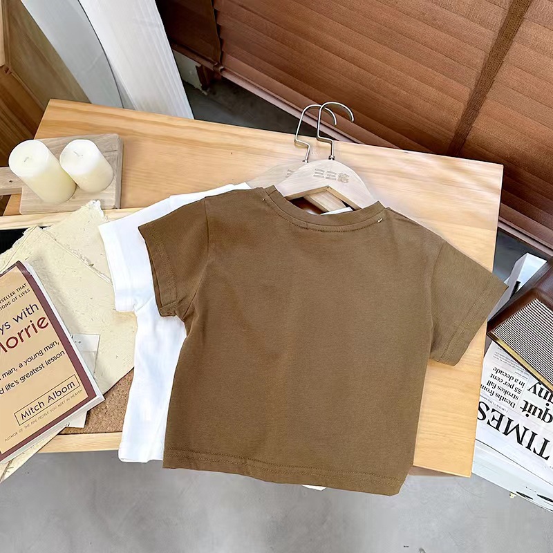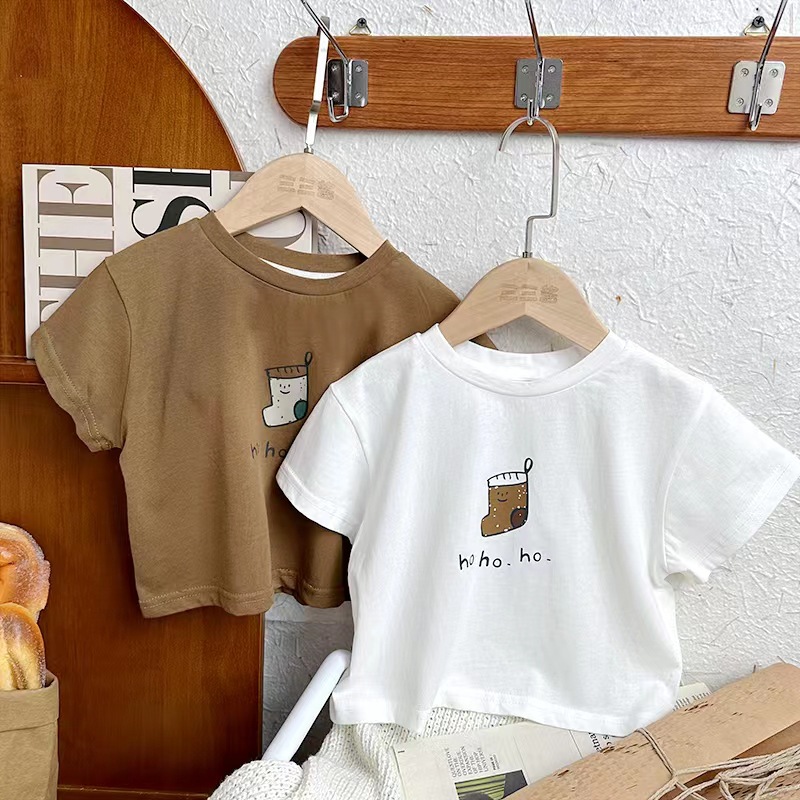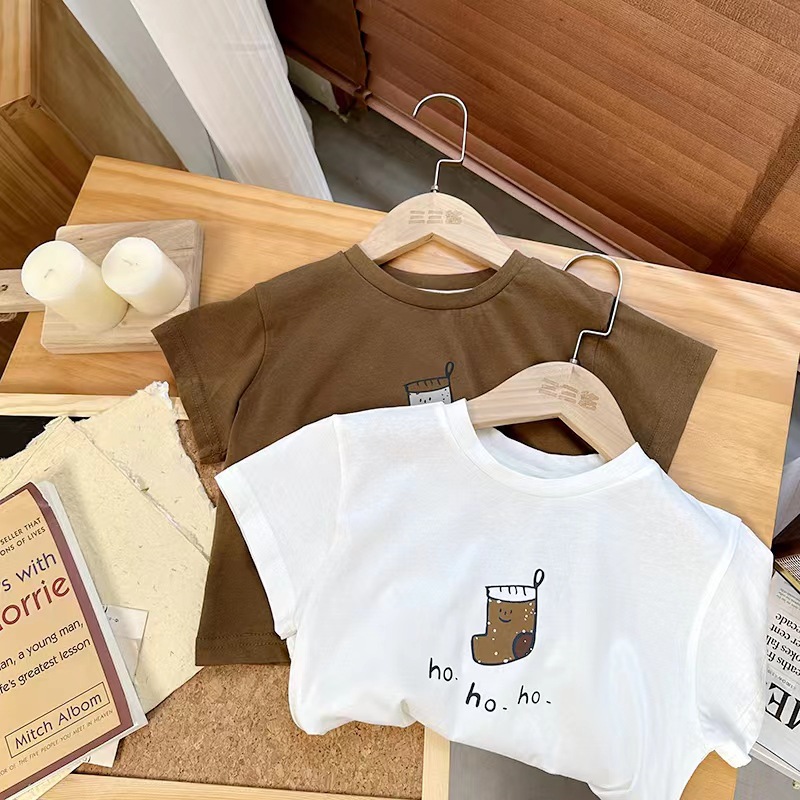 면 어린이 반팔 티셔츠 여름 2023 새로운 한국 스타일 세련된 만화 인쇄 소년과 소녀를위한 반팔 티셔츠스토어 가기
