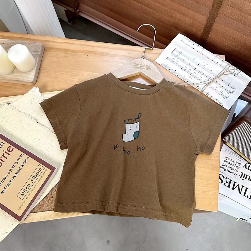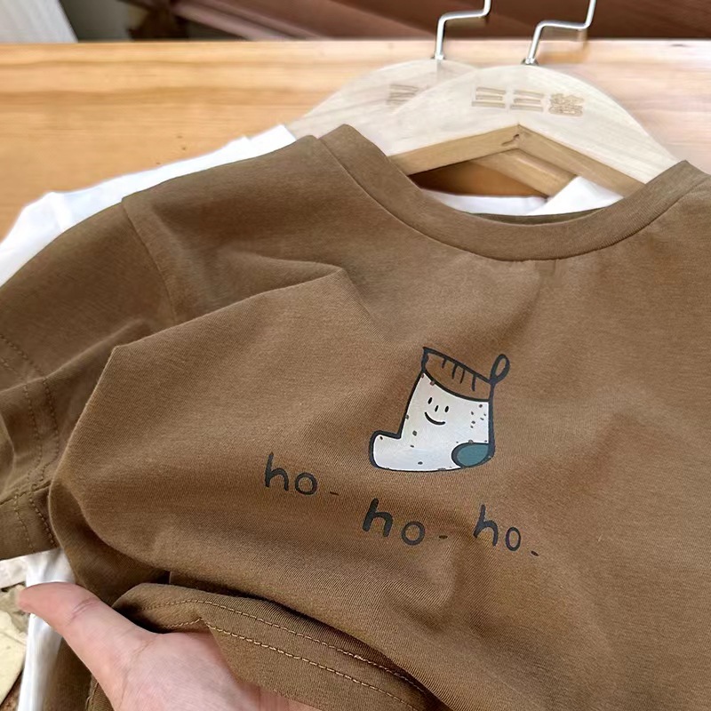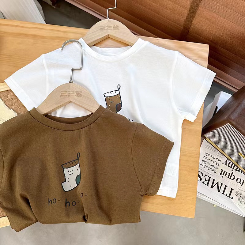 면 어린이 반팔 티셔츠 여름 2023 새로운 한국 스타일 세련된 만화 인쇄 소년과 소녀를위한 반팔 티셔츠