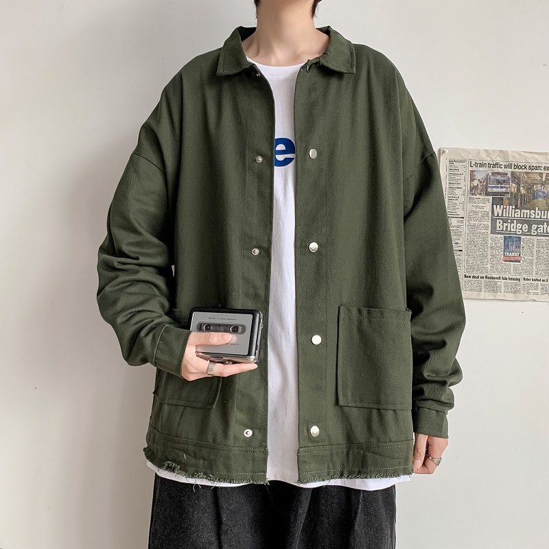 일본 스타일 바지 재킷 남자의 2020 가을 느슨한 유행 홍콩 스타일 데님 복고풍 학생 유행 브랜드 재킷스토어 가기