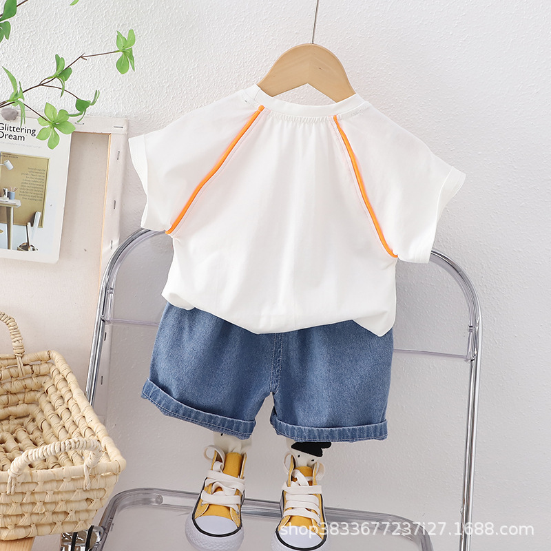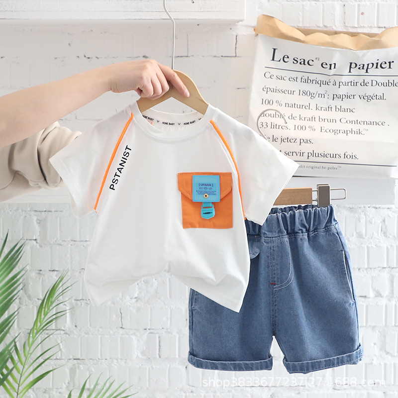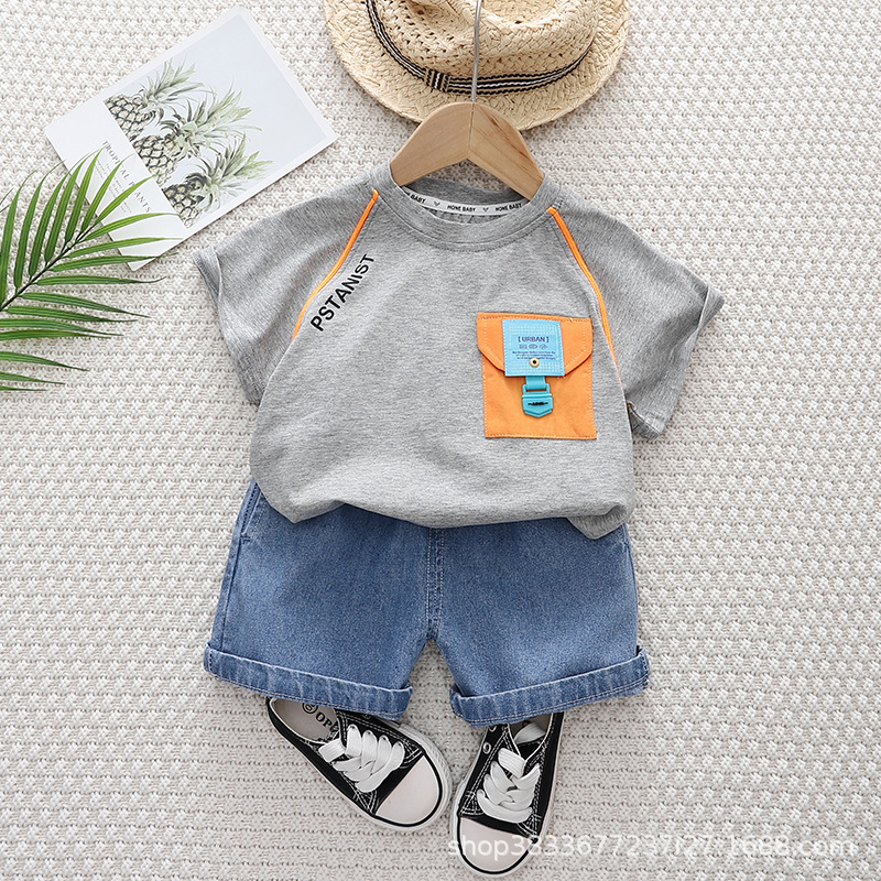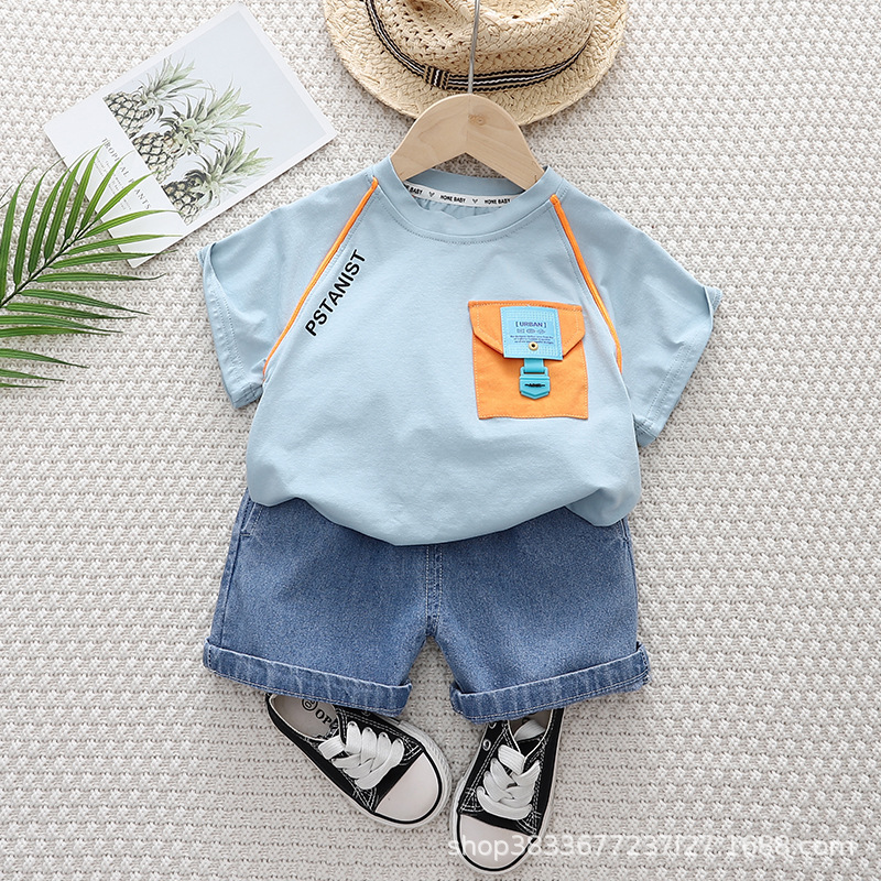 리틀 소년 여름 의류 세트 2023 새로운 아기 아동 의류 남자 아기 여름 의류 색상 매칭 반팔 투피스 도매스토어 가기