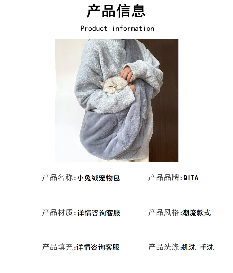 작은 토끼 벨벳 애완 동물 가방 휴대용 어깨 핸드백 편리한 외출 애완 동물 핸드백 유행 단색 애완 동물 가방