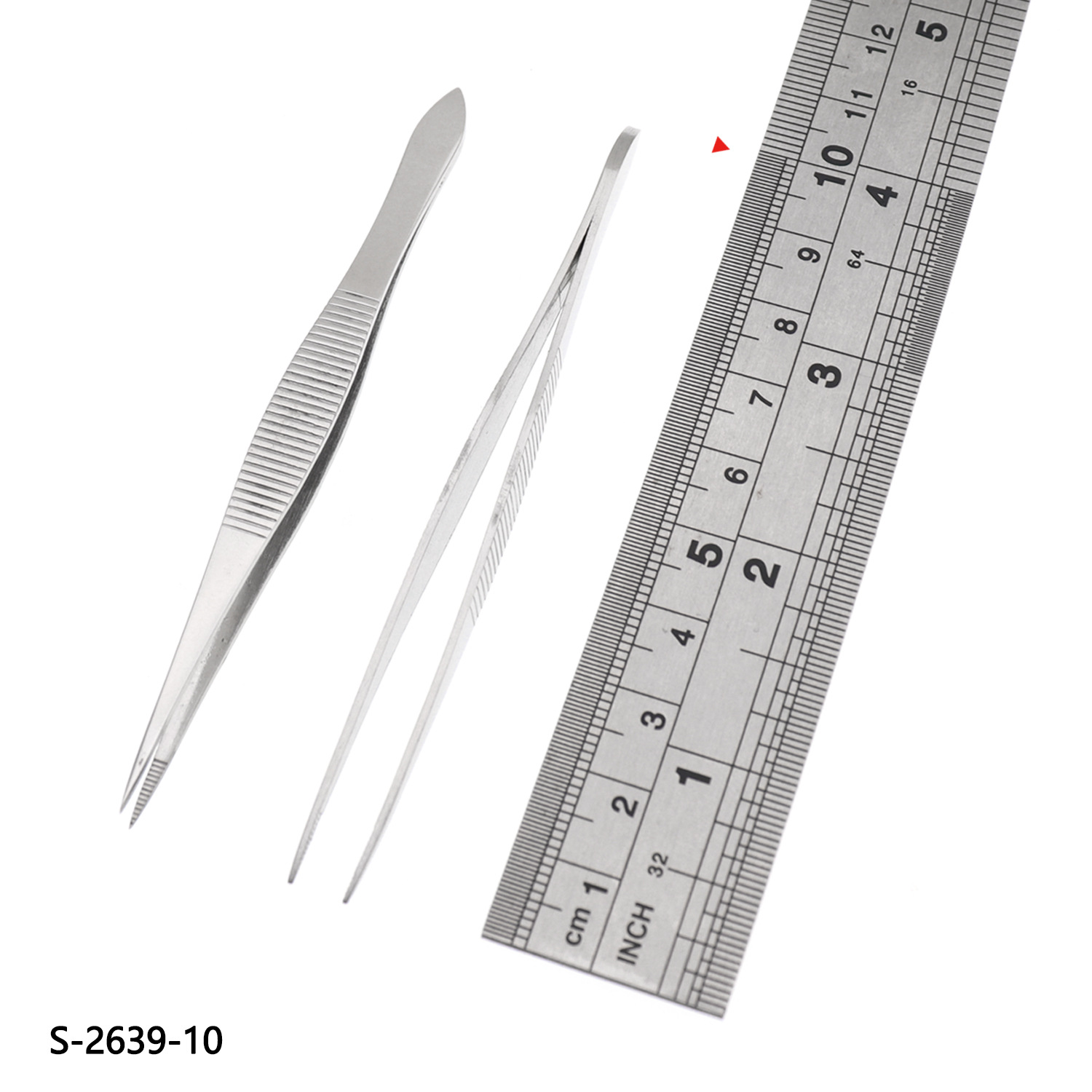 공장 공급 재고 10cm/3.93 "스테인레스 스틸 핀셋 톱니 직선 금속 핀셋 클립 도매