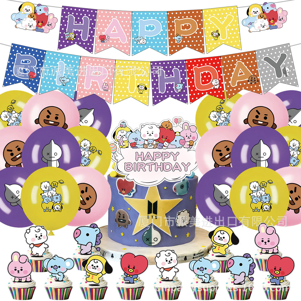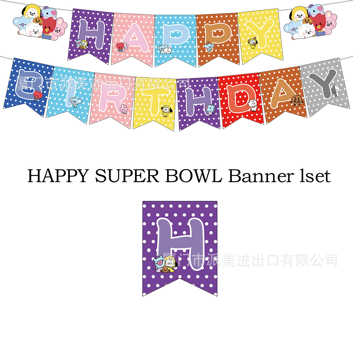 产品信息:新款韩国男团bst少年团主题派对主题儿童生日派对装饰用品4件套
