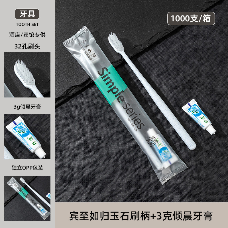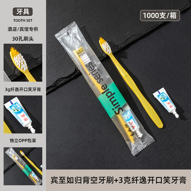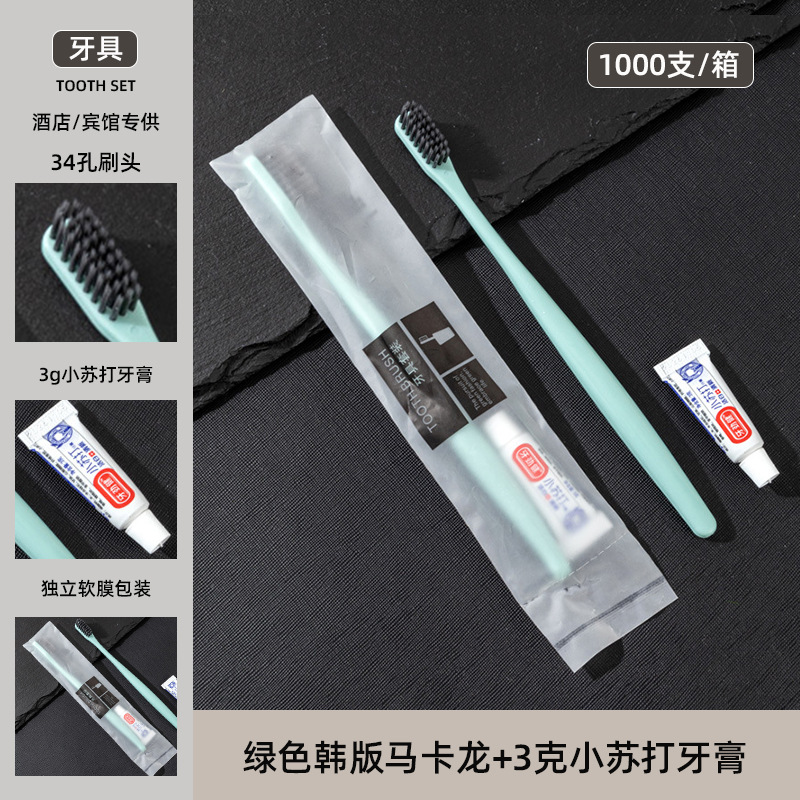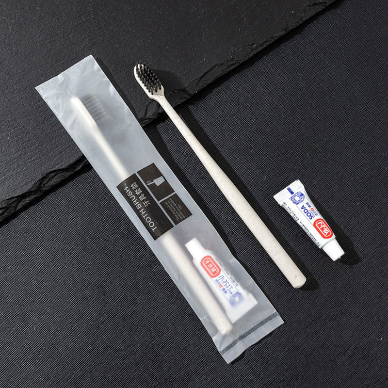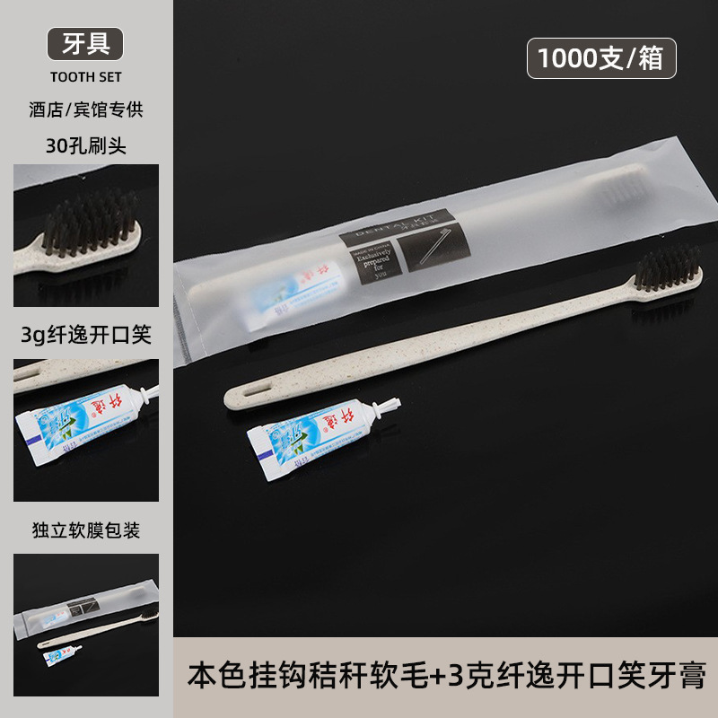 • 베이지색 후크 빨대 부드러운 칫솔 + 슬림 치약 3g