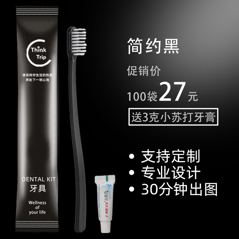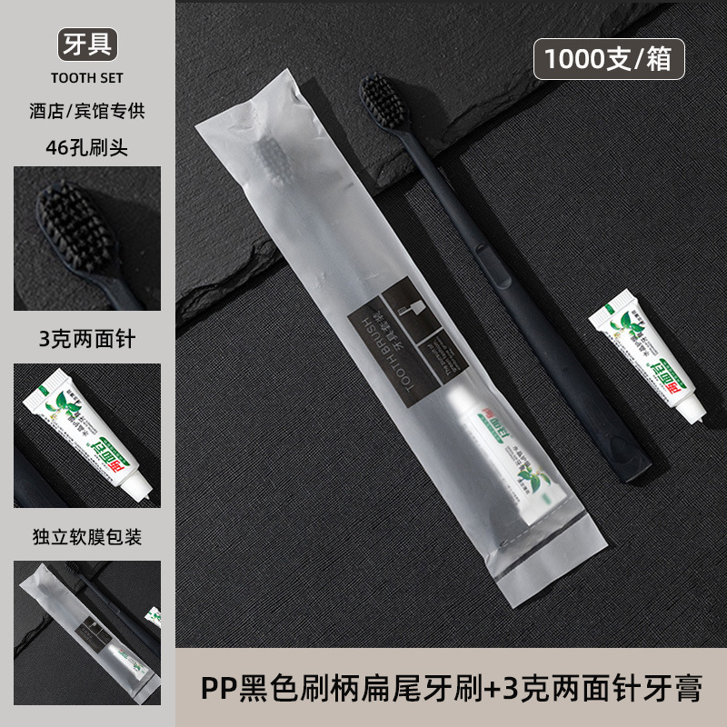 • PP 블랙 브러시 핸들 플랫 테일 칫솔 + 치약 3g
