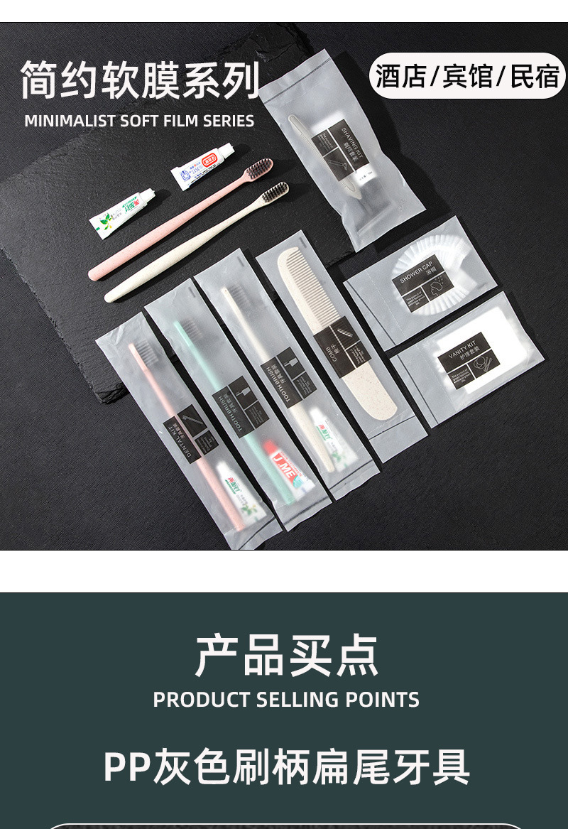 • PP 회색 브러시 손잡이 플랫 테일 칫솔 + 치약 3g
