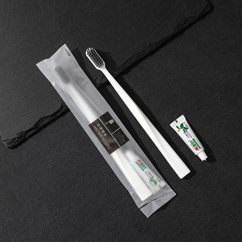 • PP 흰색 가죽 질감 칫솔 + 치약 3g
