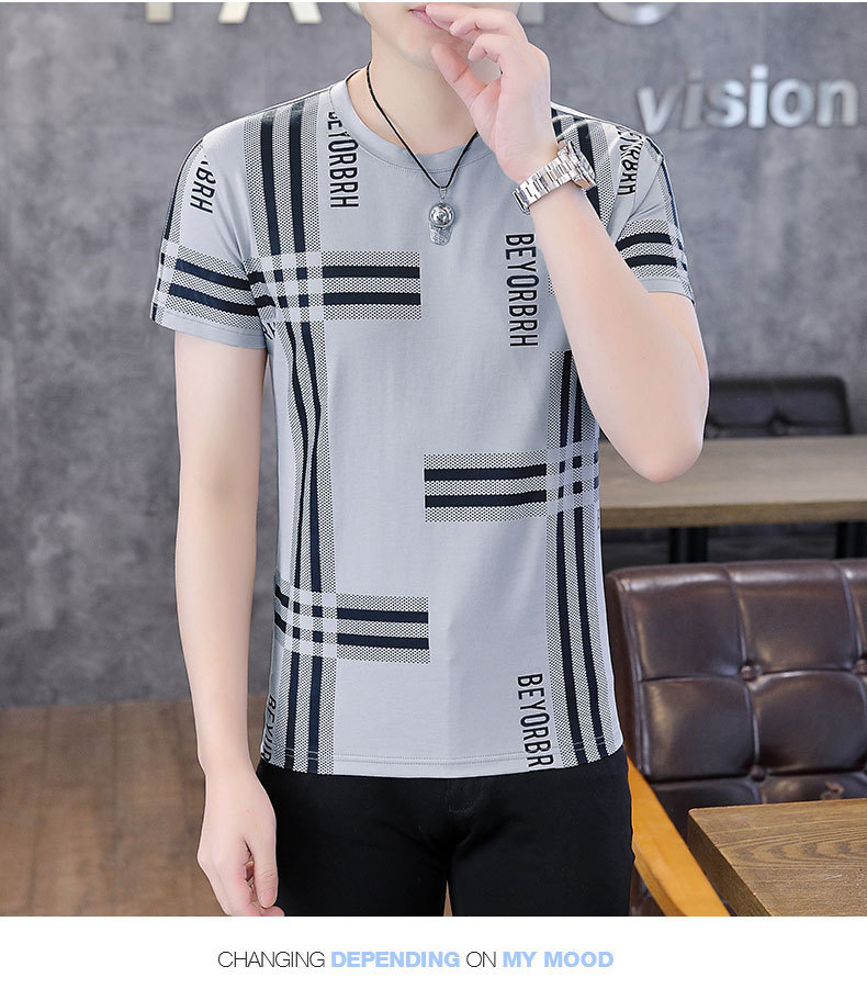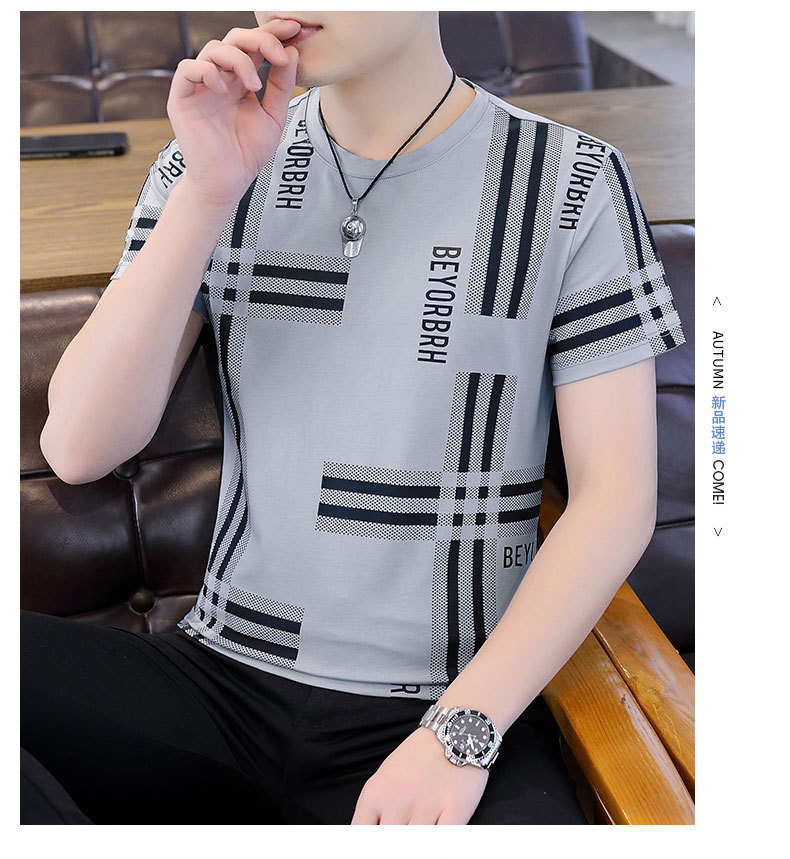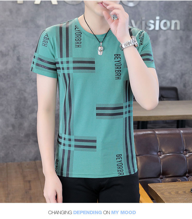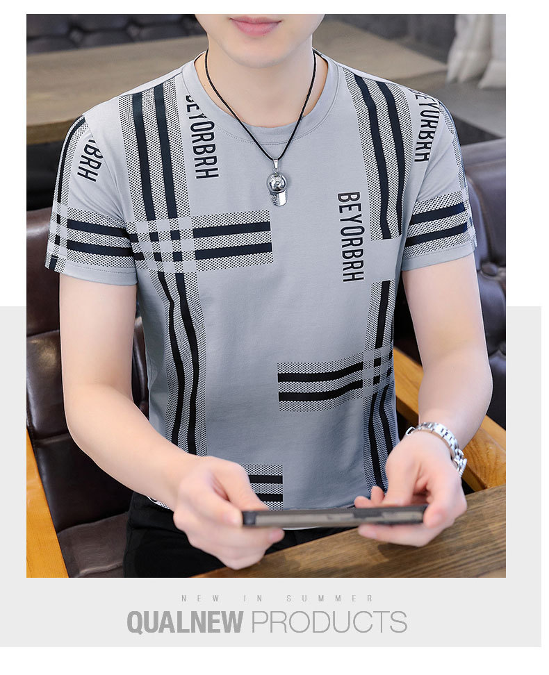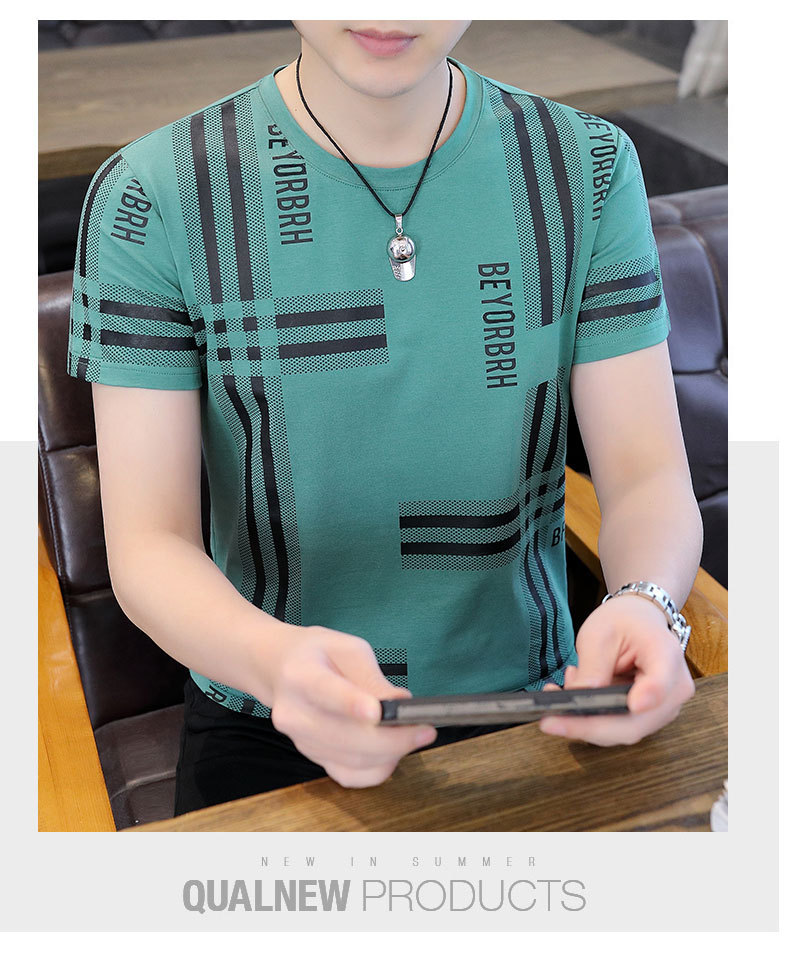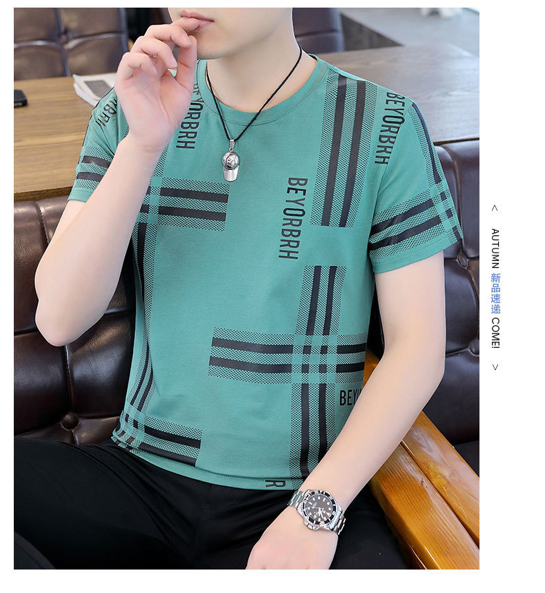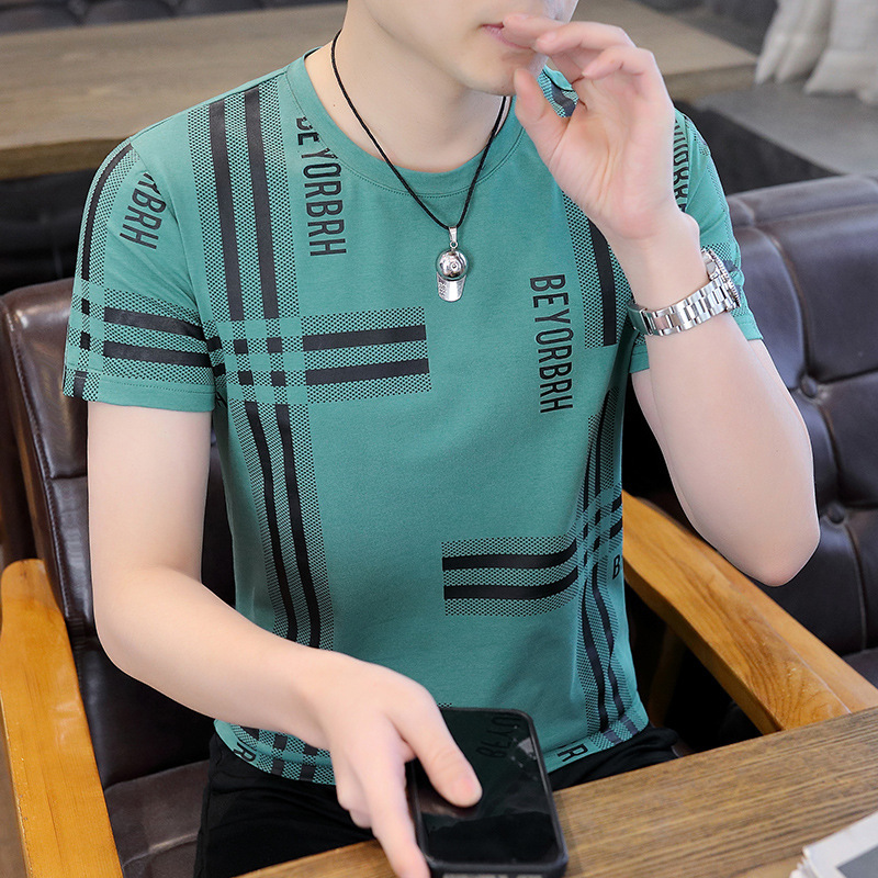 2023 새로운 청소년 반팔 티셔츠 여름 캐주얼 남성 한국 스타일 라운드 넥 반팔 슬림 핏 남성 상의스토어 가기