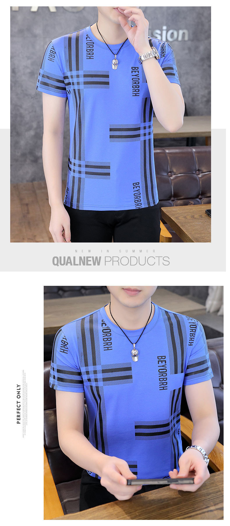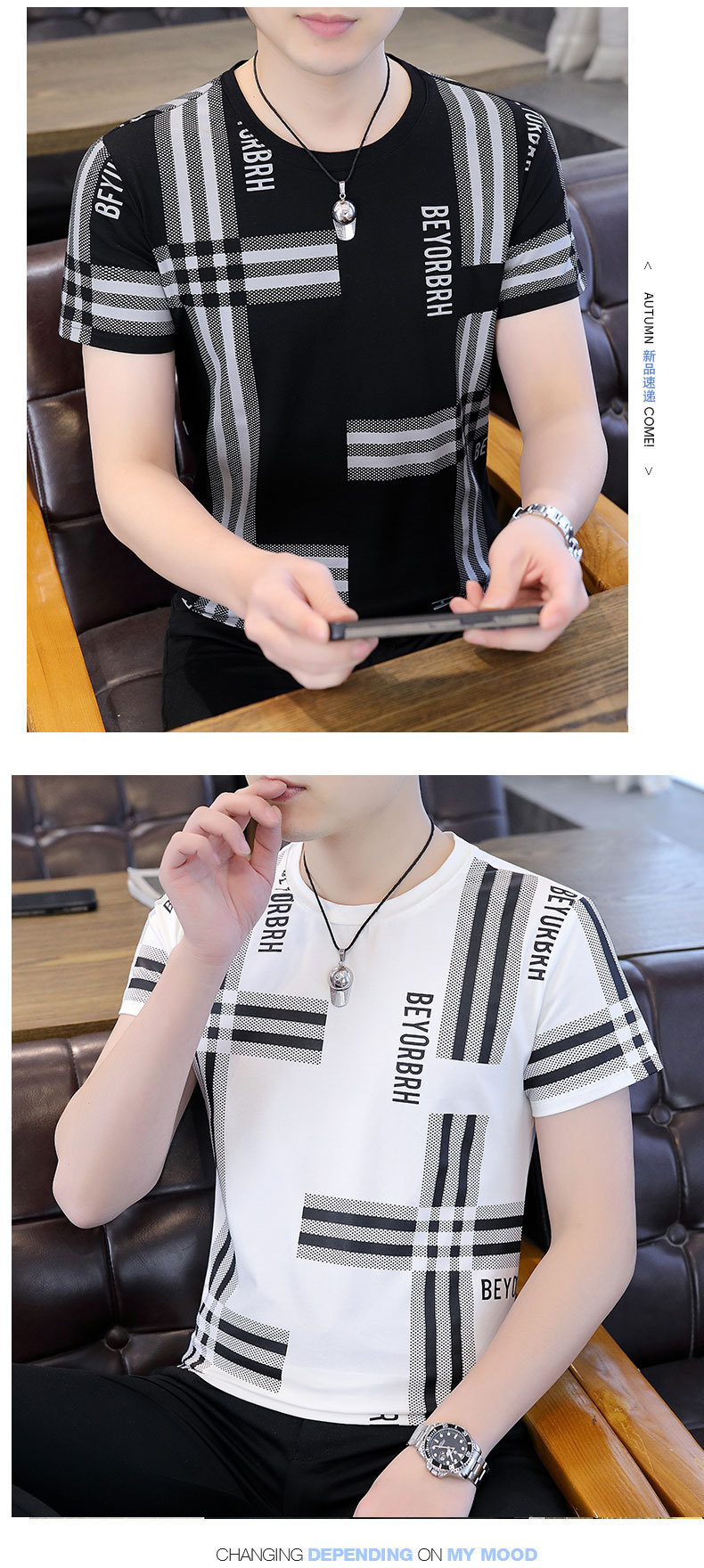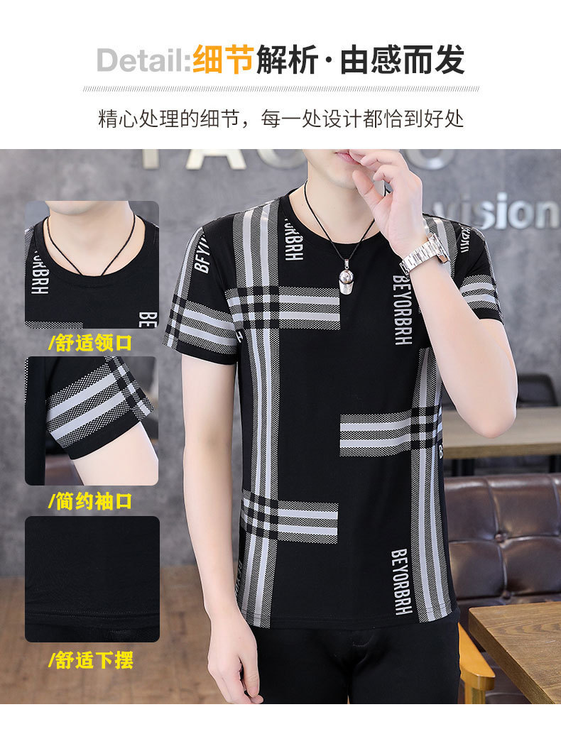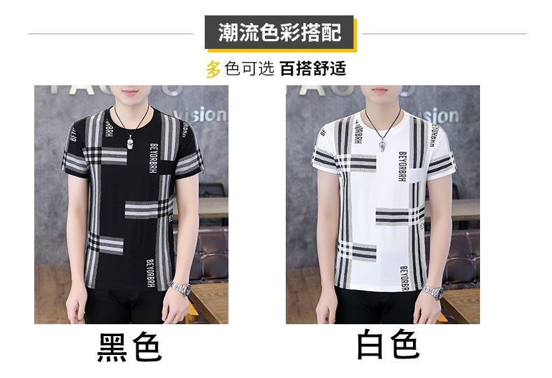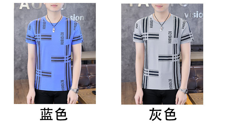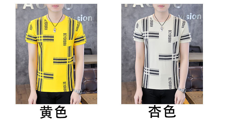 2023 새로운 청소년 반팔 티셔츠 여름 캐주얼 남성 한국 스타일 라운드 넥 반팔 슬림 핏 남성 상의스토어 가기