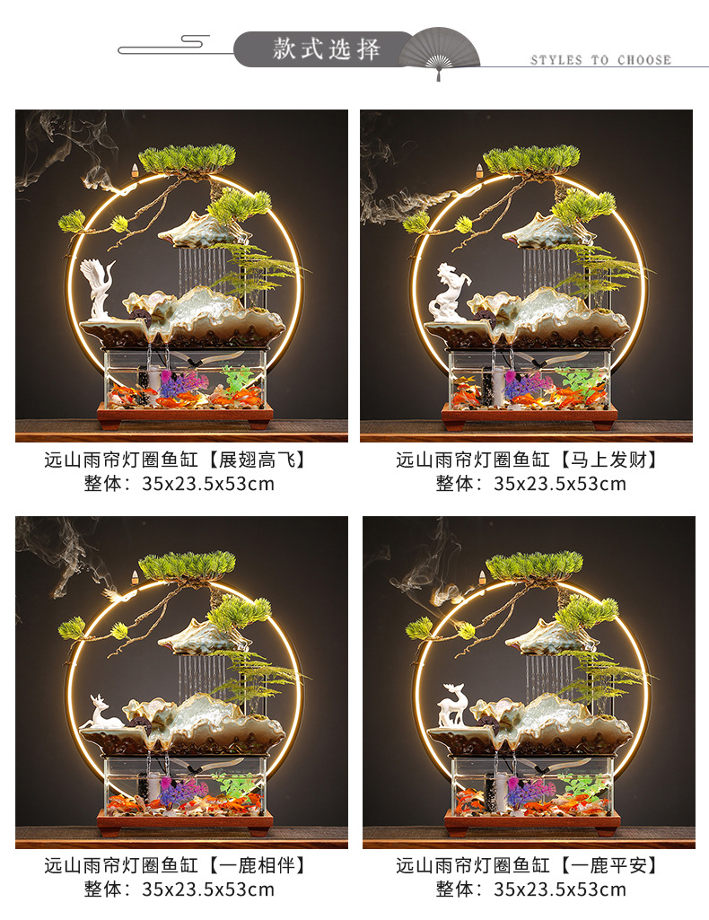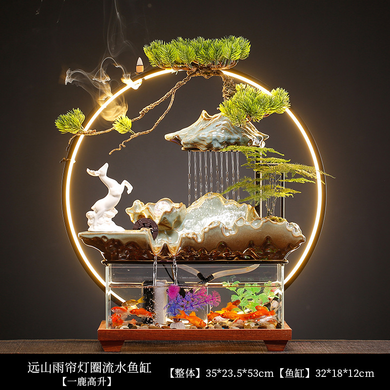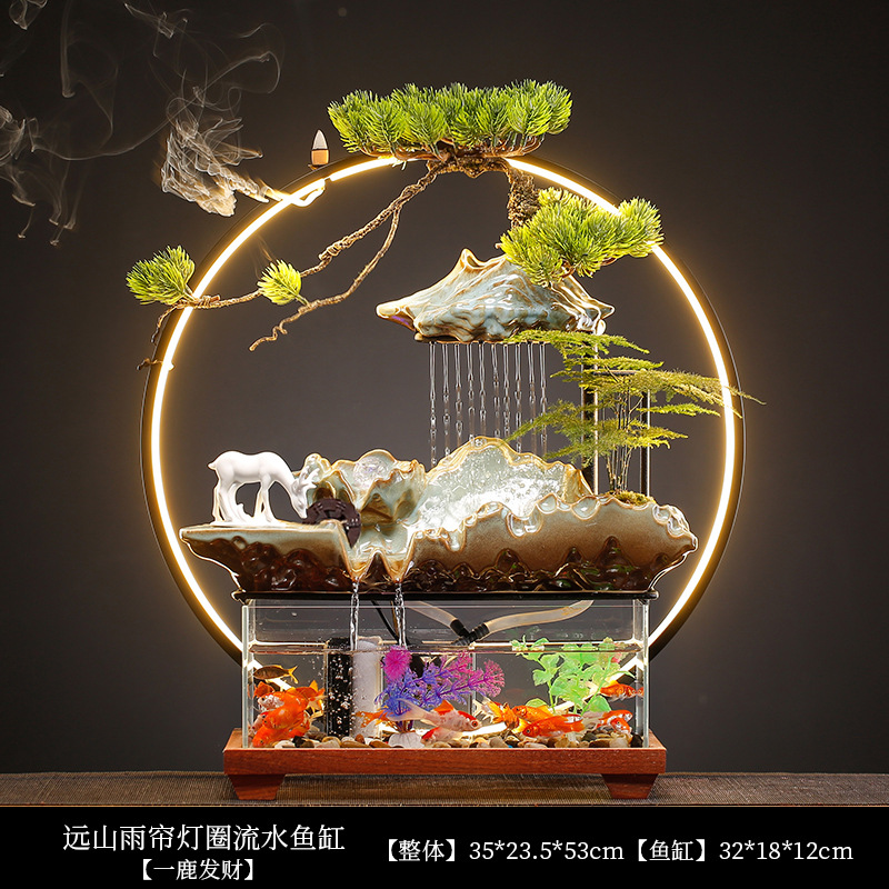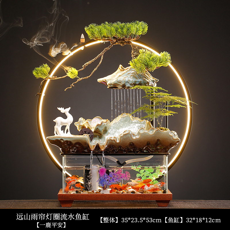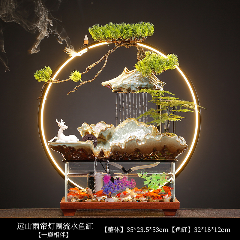 • 먼 산 비 커튼 흐르는 물 어항 50 램프 링 (사슴 한 마리 상승) 필터 박스 + 아스파라거스 + 역류 향기 + 물 잔디