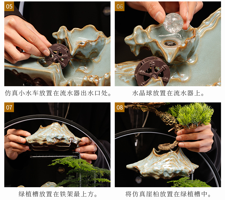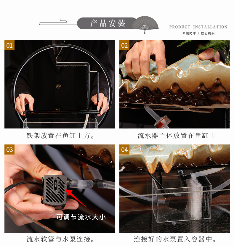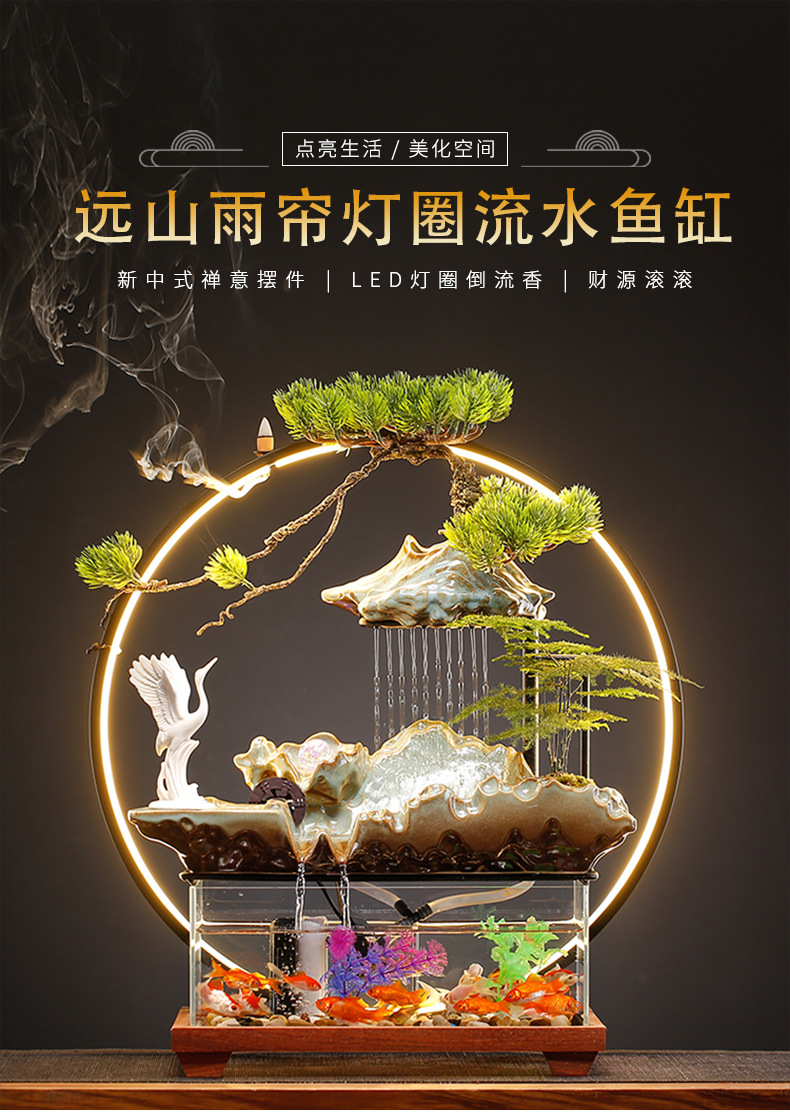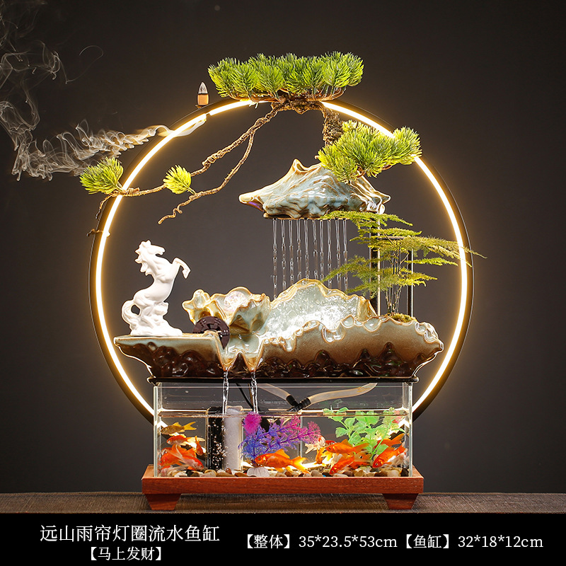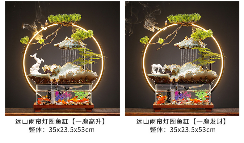 • 먼 산 비 커튼 흐르는 물 어항 50 램프 링 (사슴 한 마리 상승) 필터 박스 + 아스파라거스 + 역류 향기 + 물 잔디